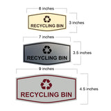 Our Fancy Recycling bin Sign can be attached to the door, wall or window of your home or business. The sign text and design work is laser engraved into sturdy plastic. Each sign comes with an adhesive foam backing, allowing them to be attached to any flat surface. Comes in multiple colors. Our recycling signs are great for your home or business.