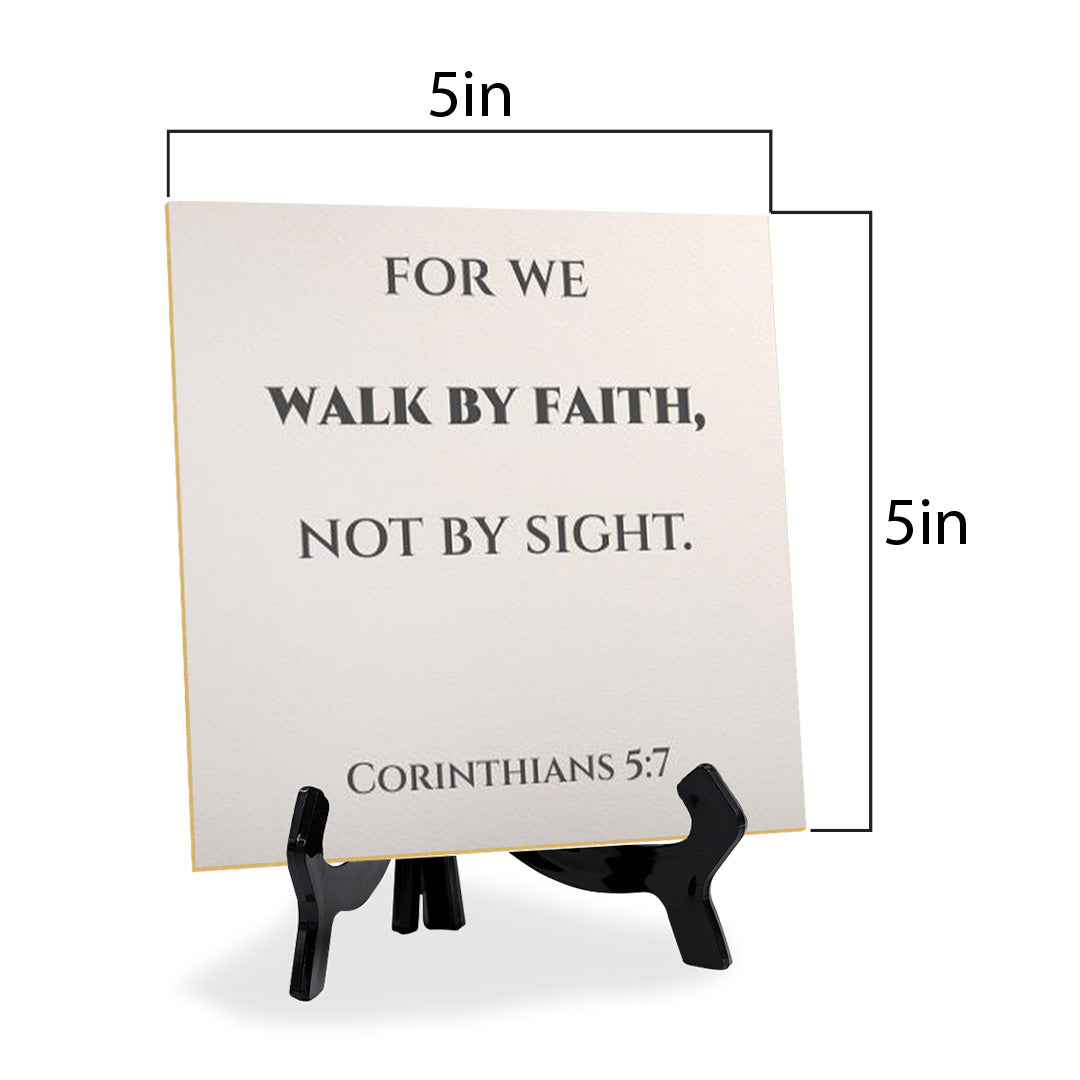 For We Walk By Faith, Not By Sight. Corinthians 5:7 5"x 5" Square Table Sign With Acrylic Easel