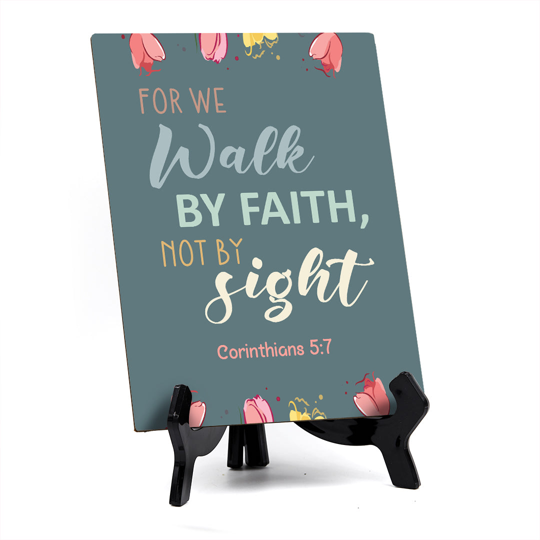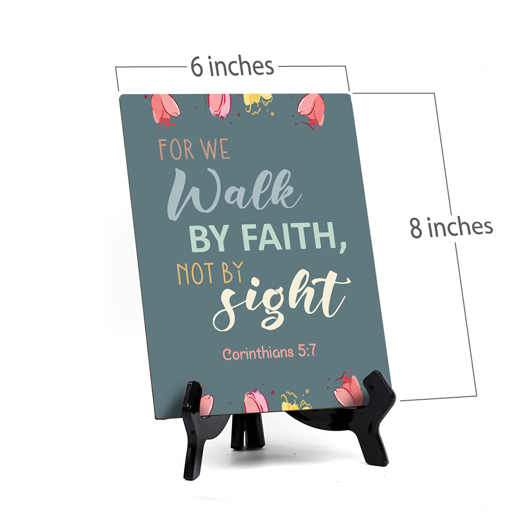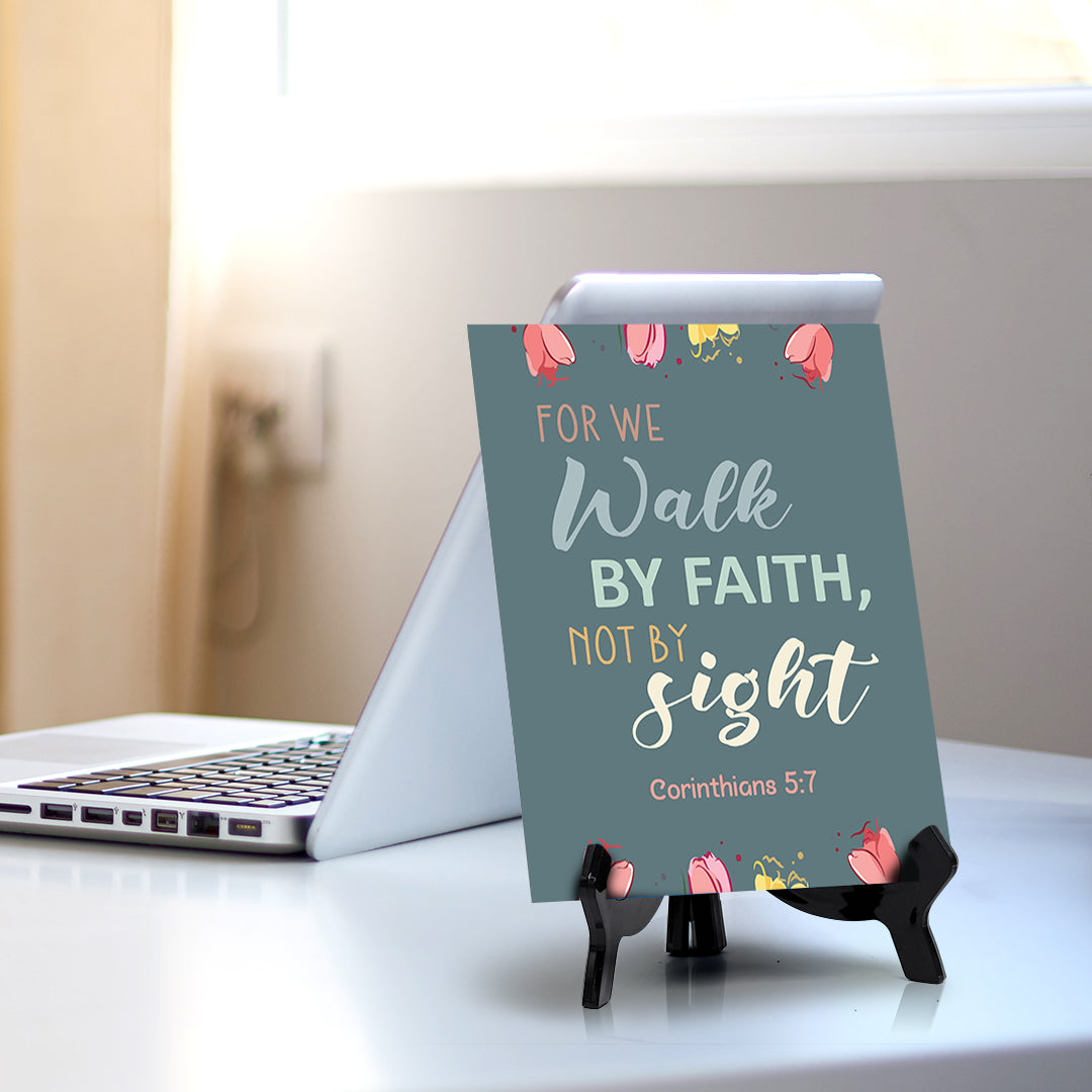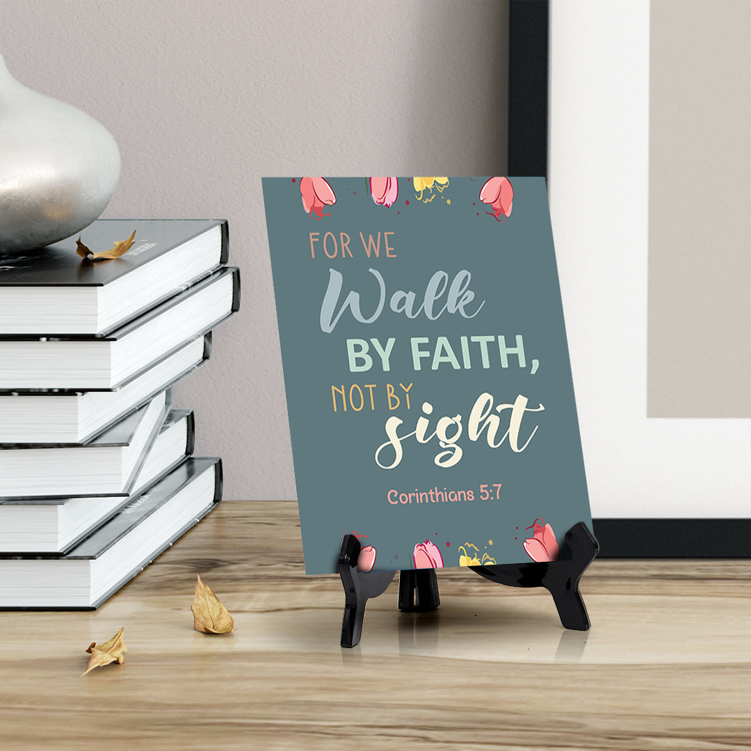 For we walk by faith, not by sight Corinthians 5:7 6 x 8" Table Sign With Acrylic Easel