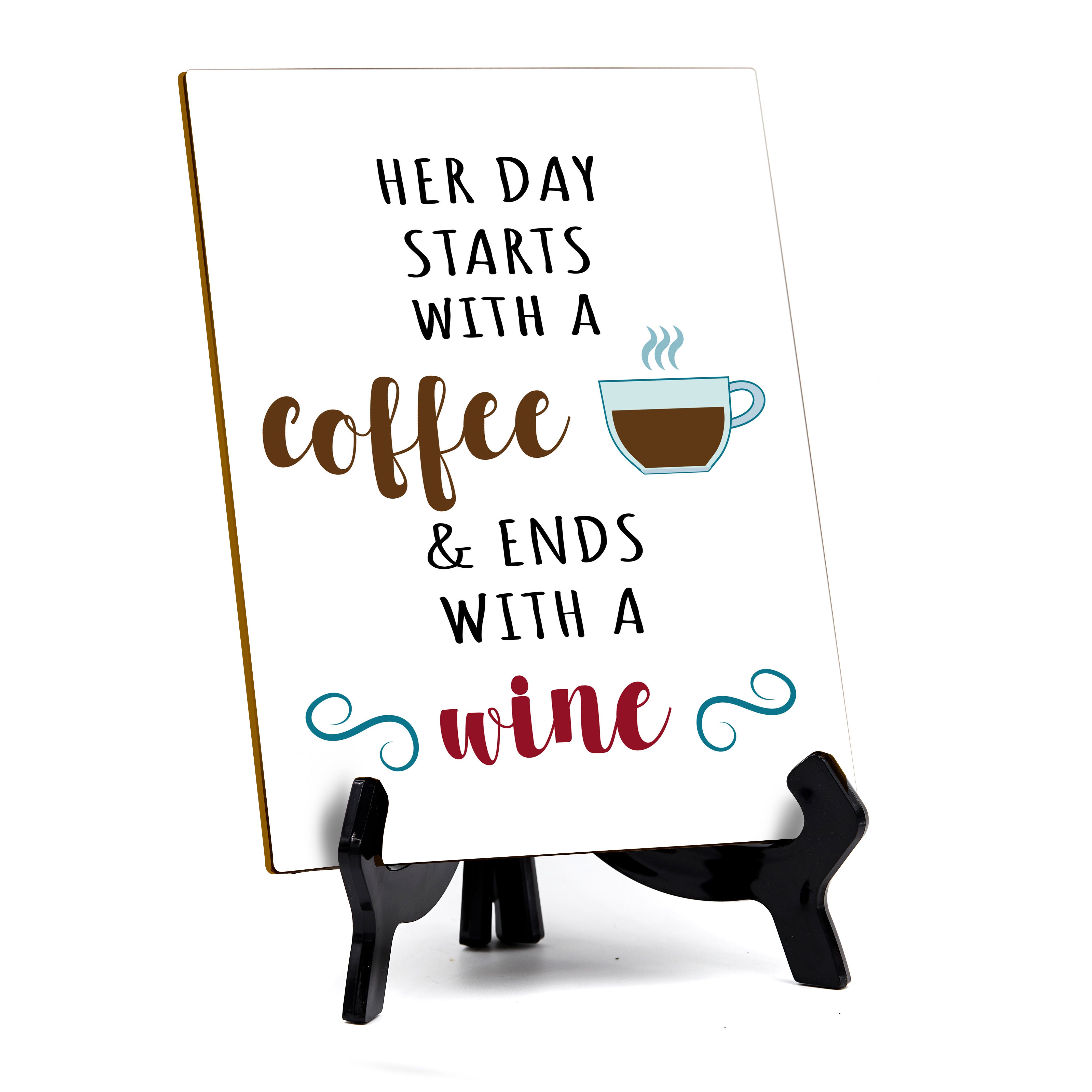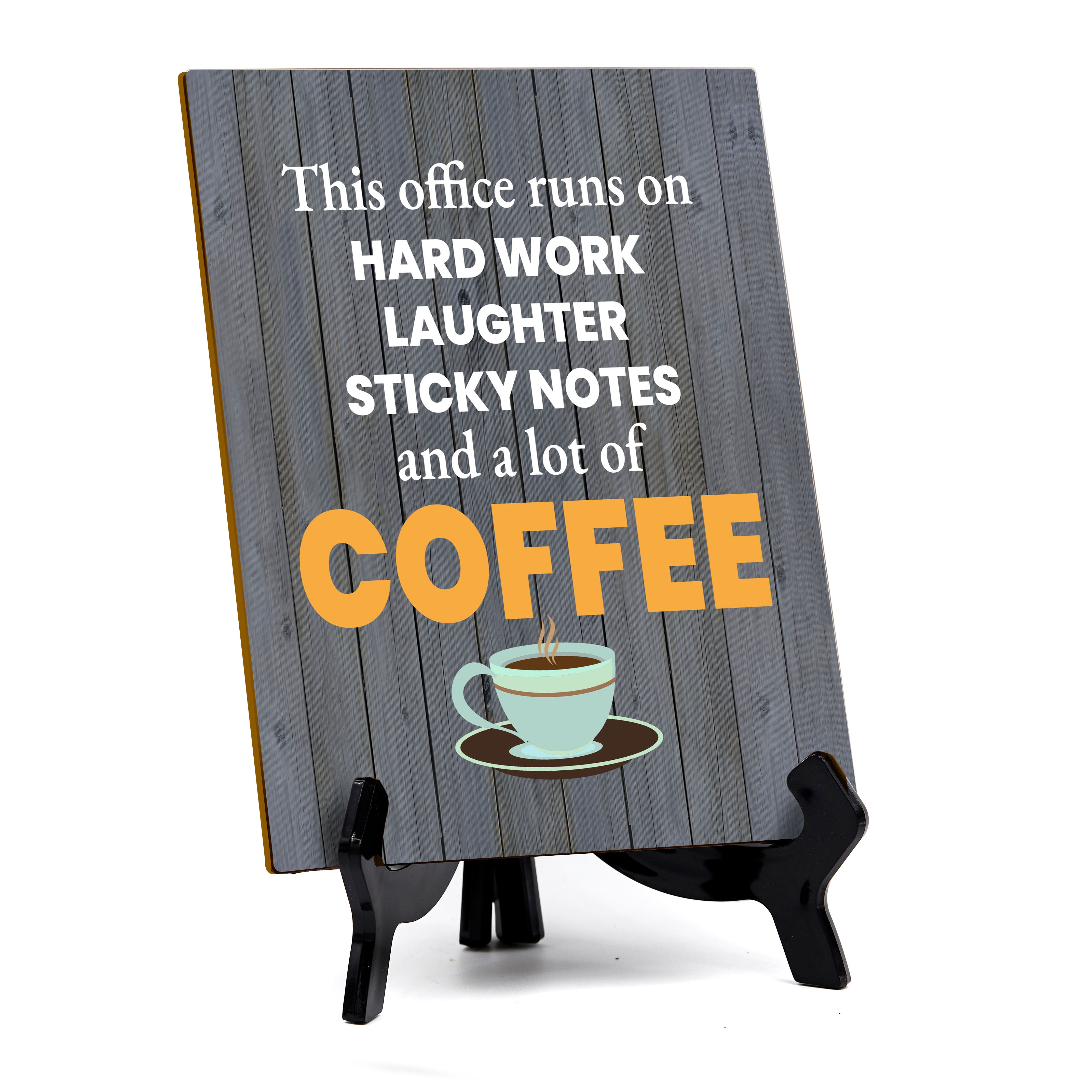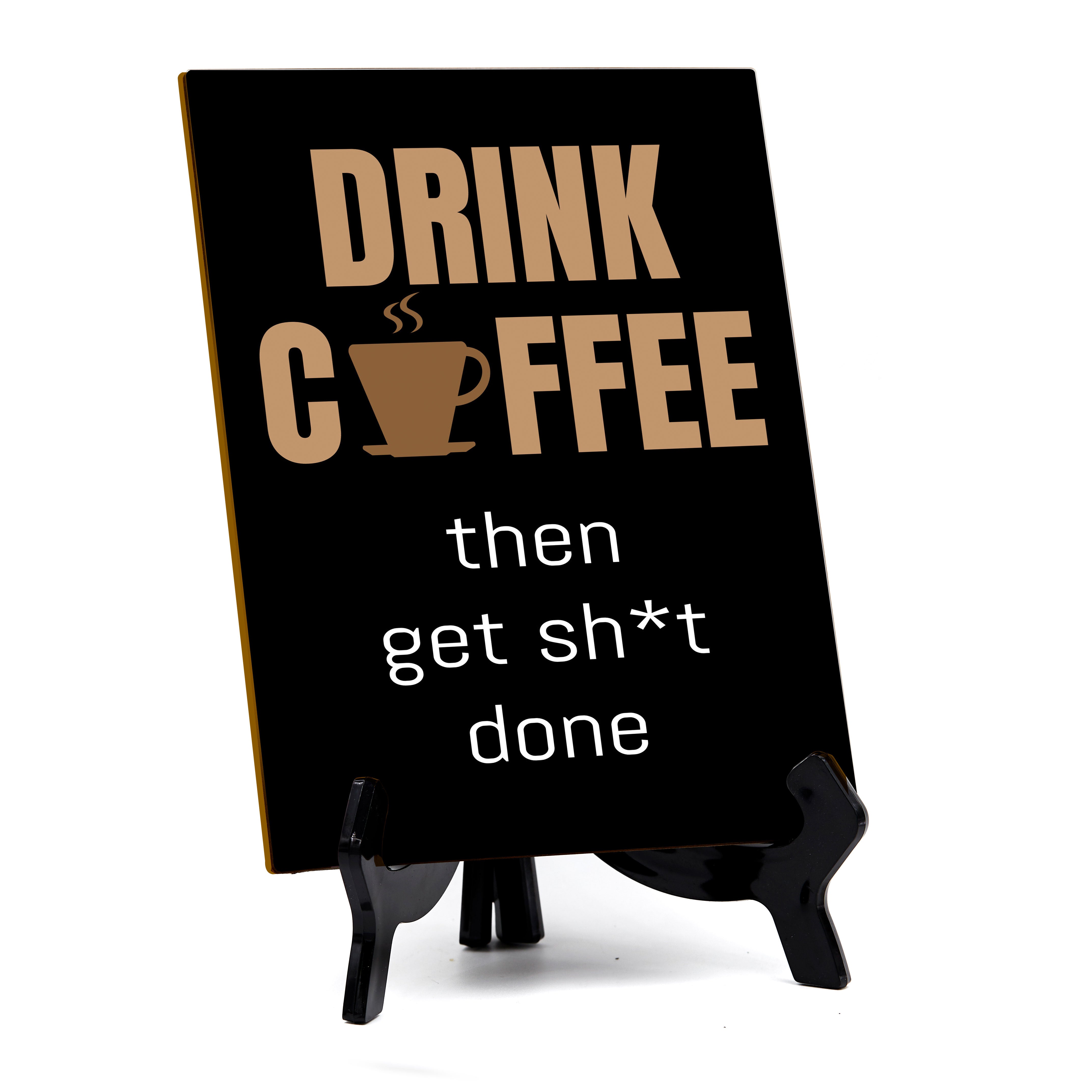 Our Signs ByLITA Funny Coffee Home & Office Decor, 6X8 Table Sign. This table sign comes with it's own black acrylic easel, easy to set up and display on any flat surface.