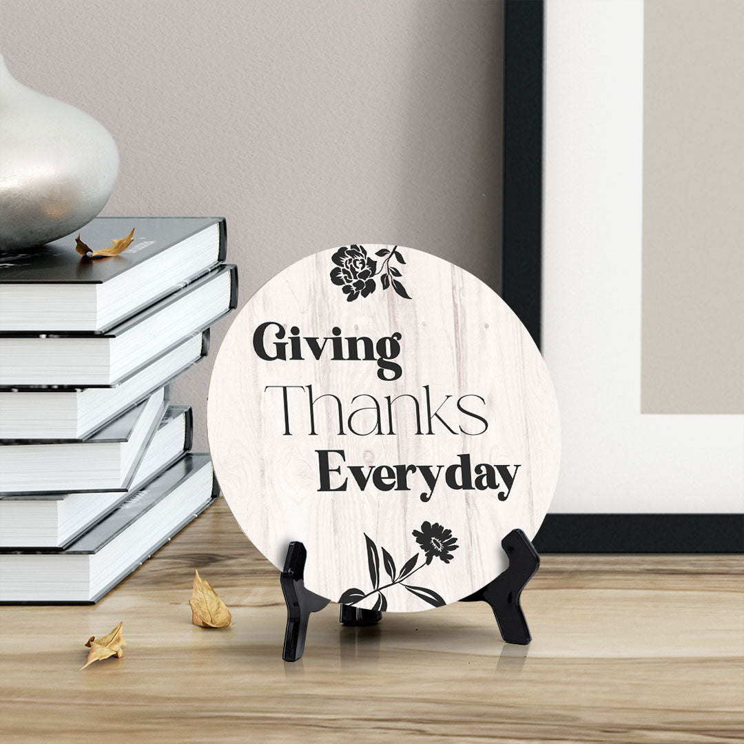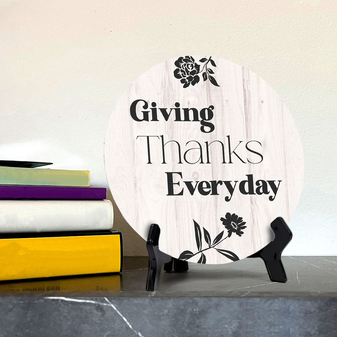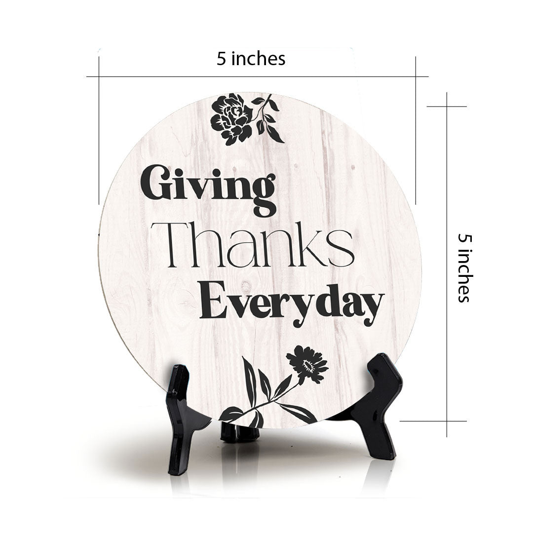 Giving Thanks Everyday Circle Table Sign with Acrylic Stand (5x5")