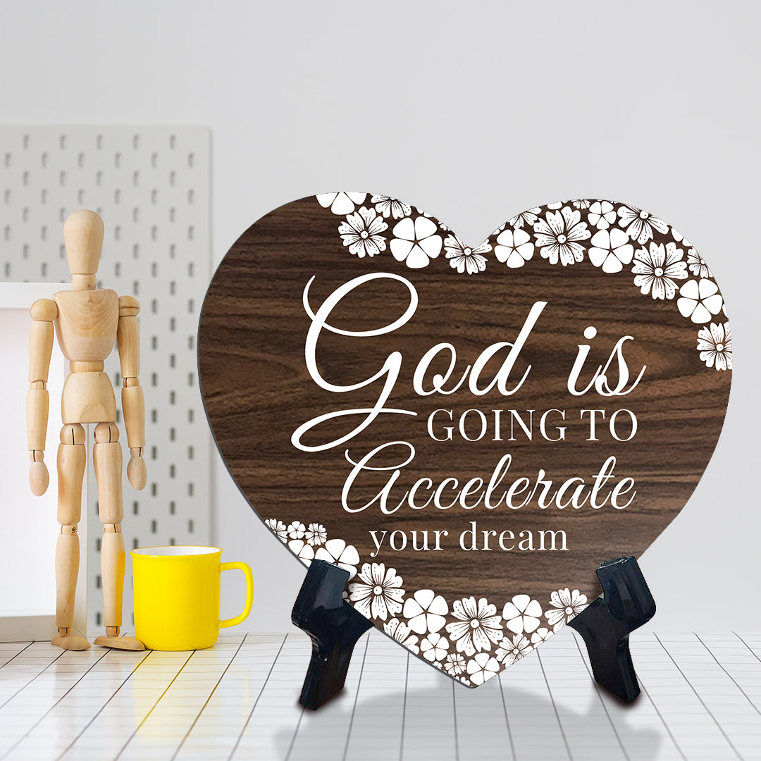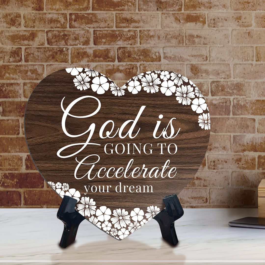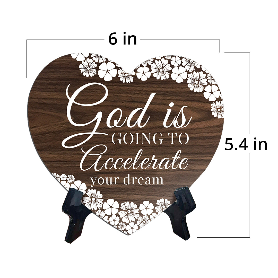 God Is Going To Accelerate Your Dreams Heart Shape Table Sign (6 x 5.4")