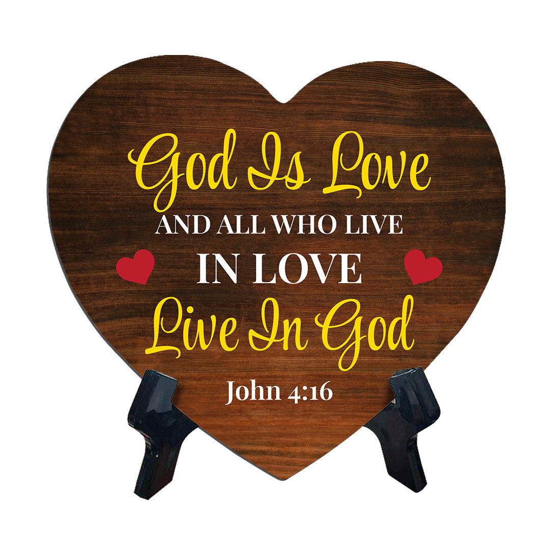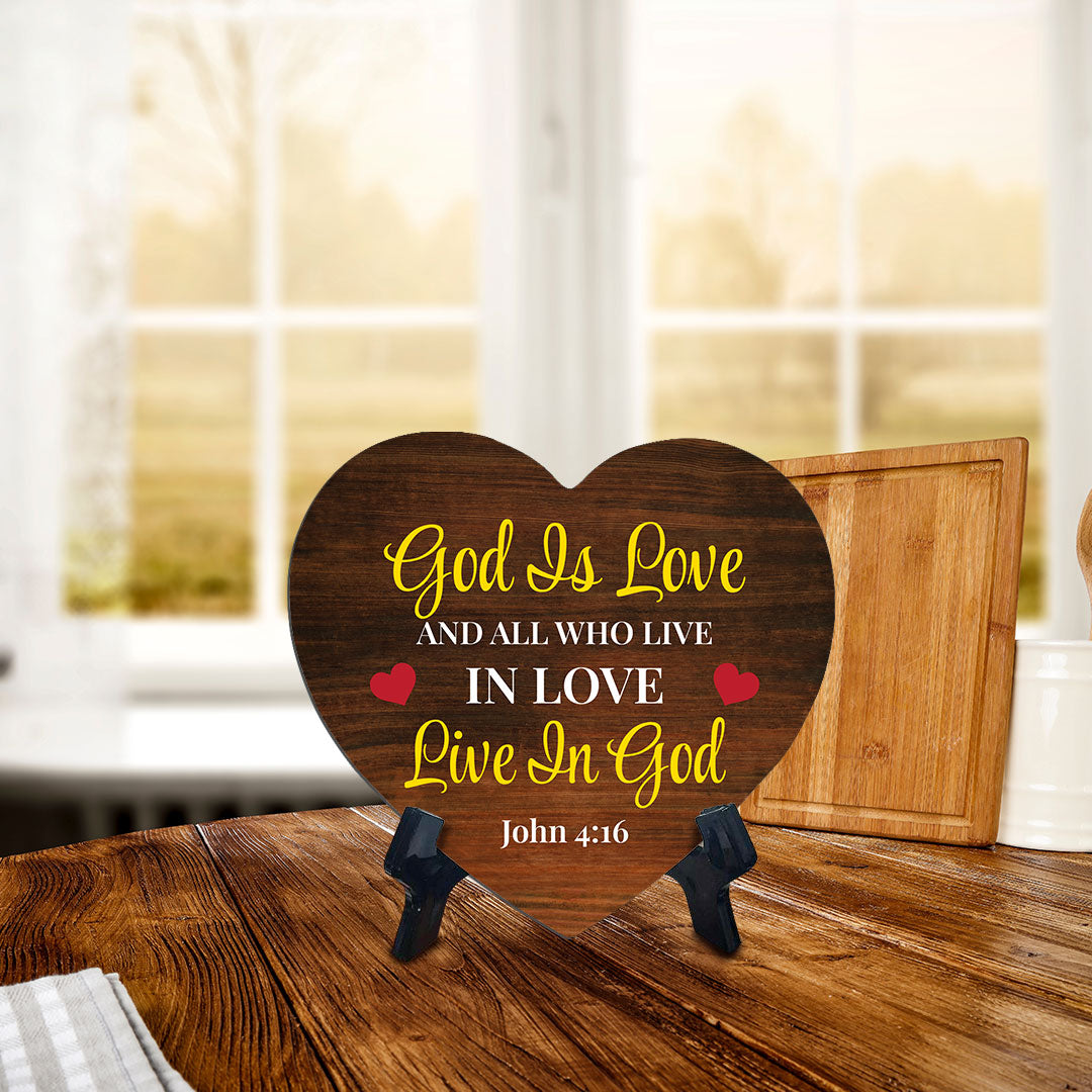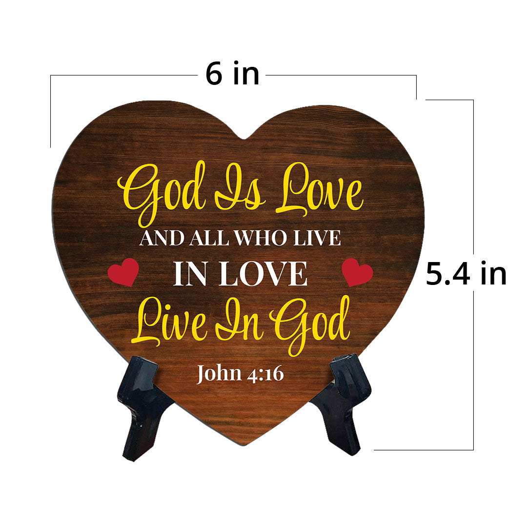 God Is Love And All Who Live In Love Live In God John 4:16 Heart Table Sign with Acrylic Stand (6x5")