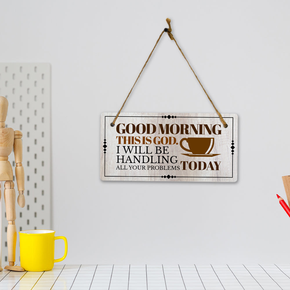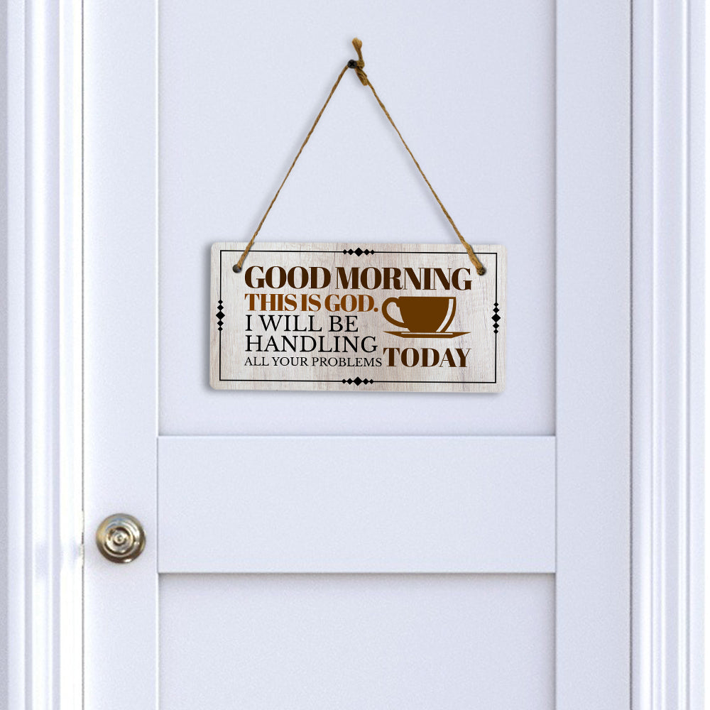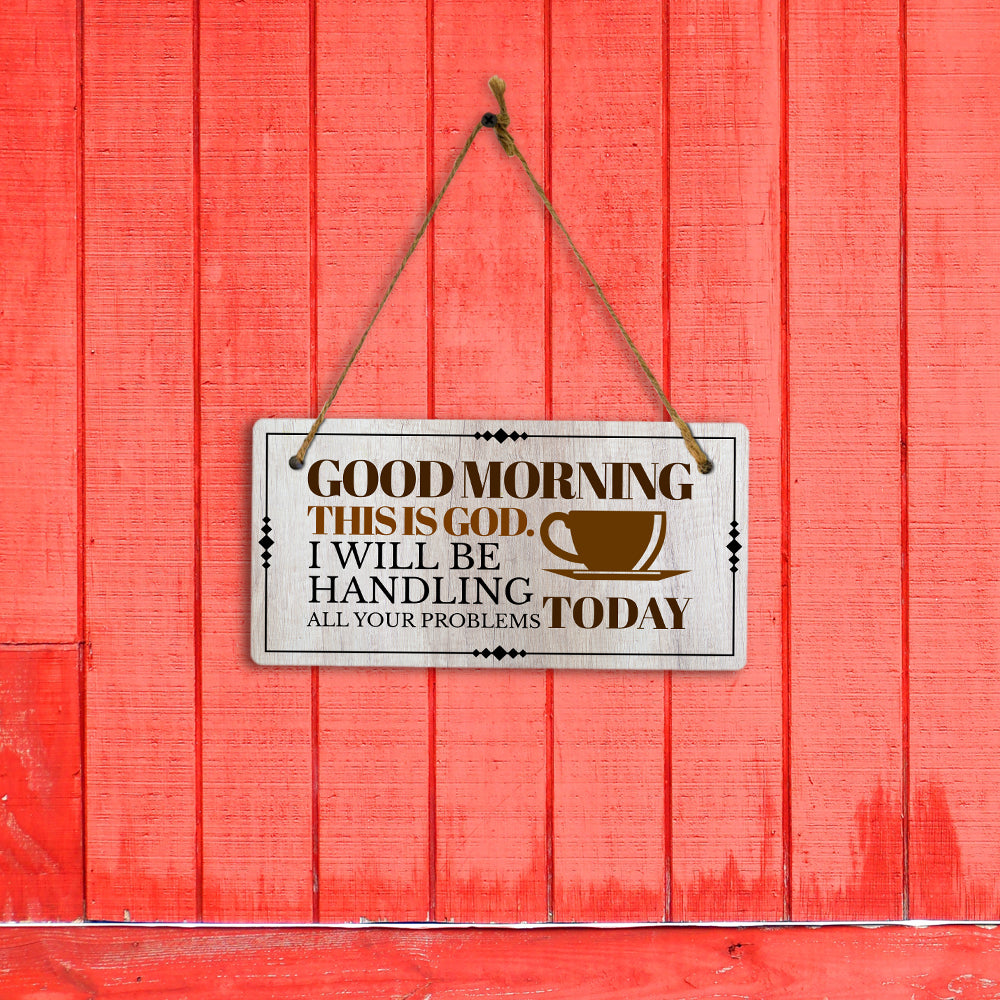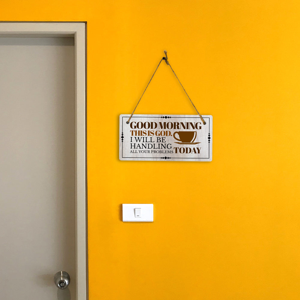 Good Morning This Is God. I Will Be Handling All Your Problems Today 5x10 Hanging Plus Wall or Door Sign