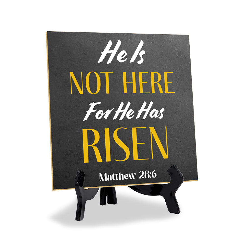 He Is Not Here For He Has Risen Matthew 28:6 5"x 5" Square Table Sign With Acrylic Easel