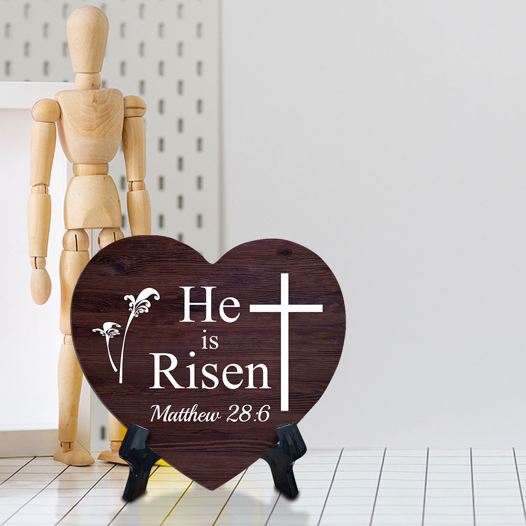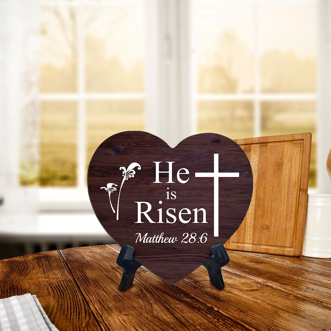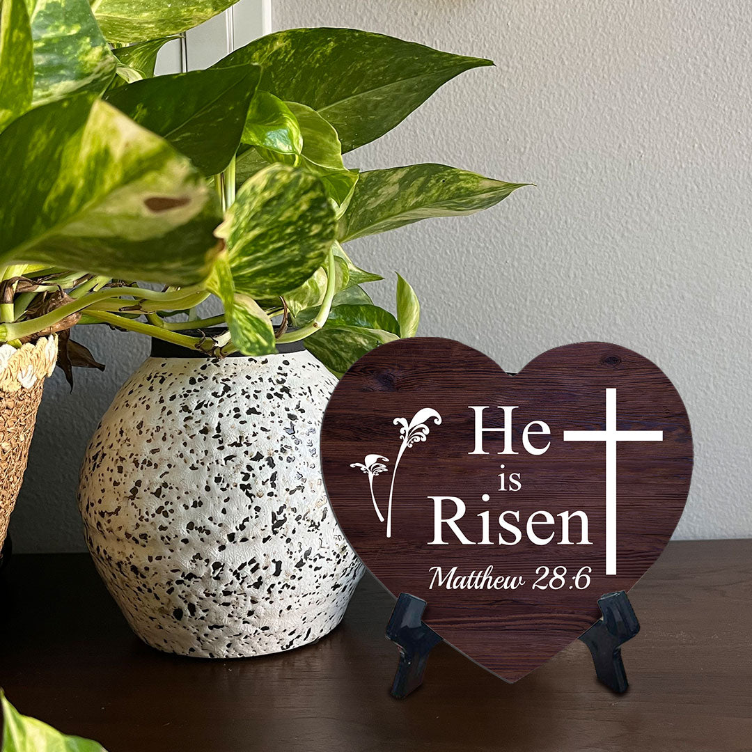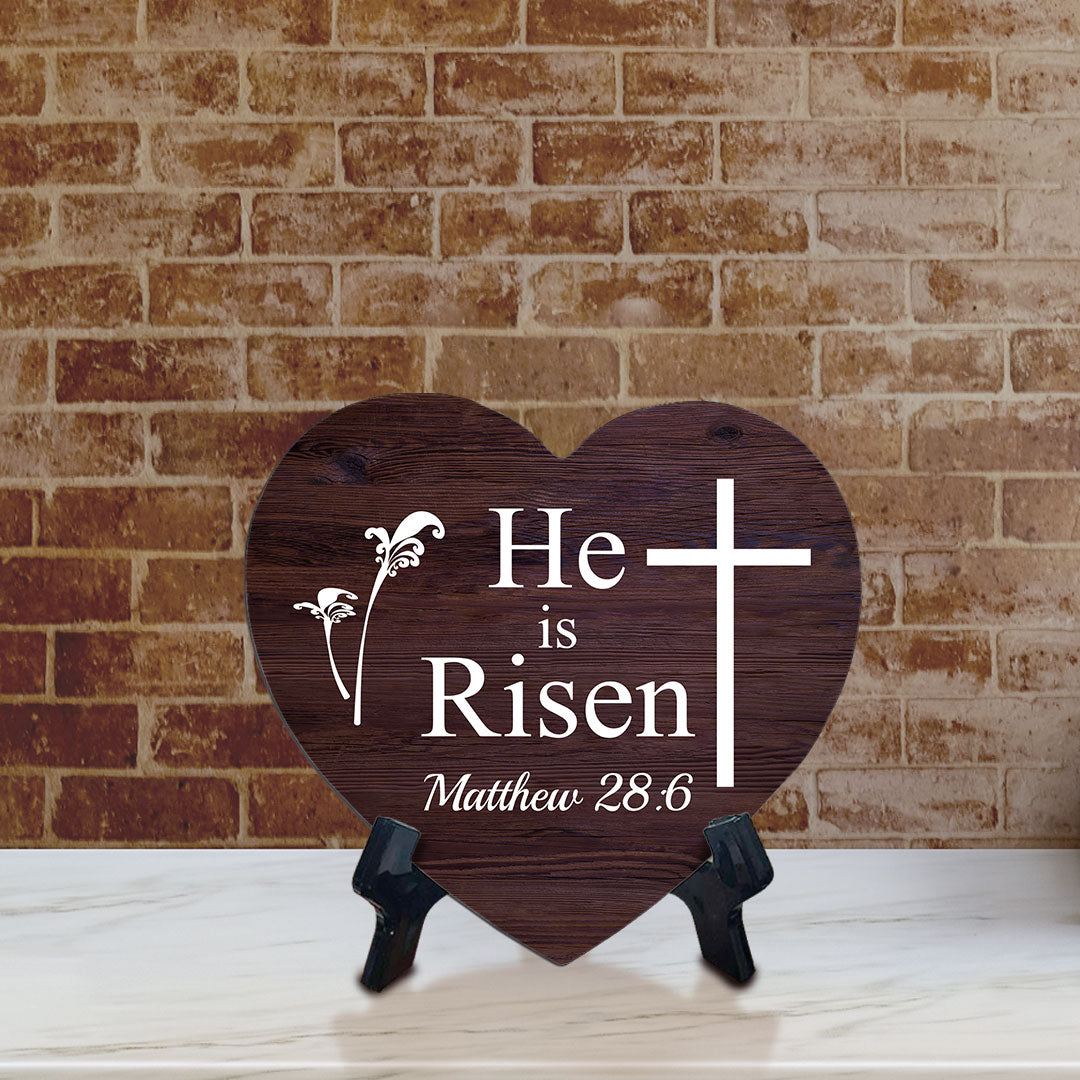 He Is Risen Matthew 28:6 Heart Table Sign with Acrylic Stand (6x5")