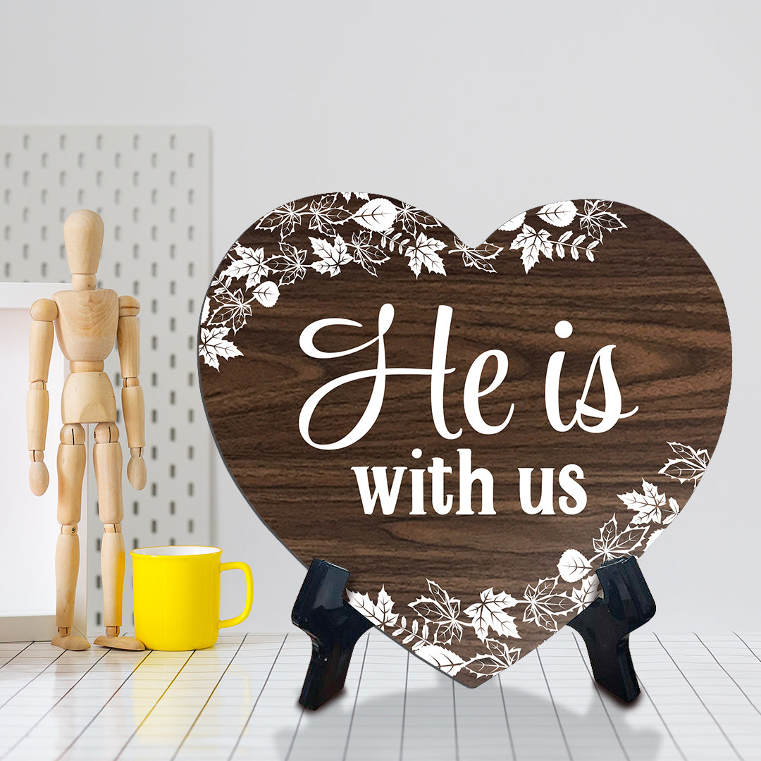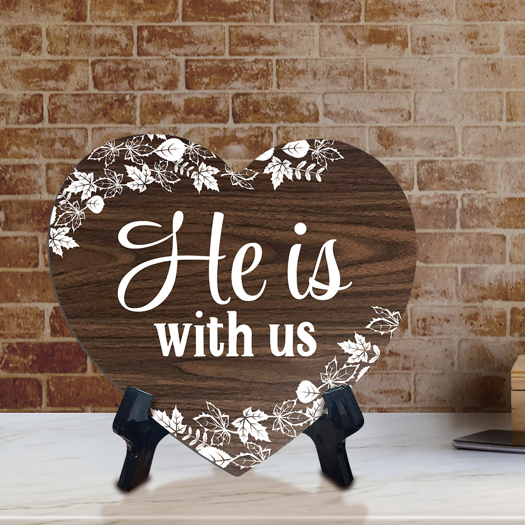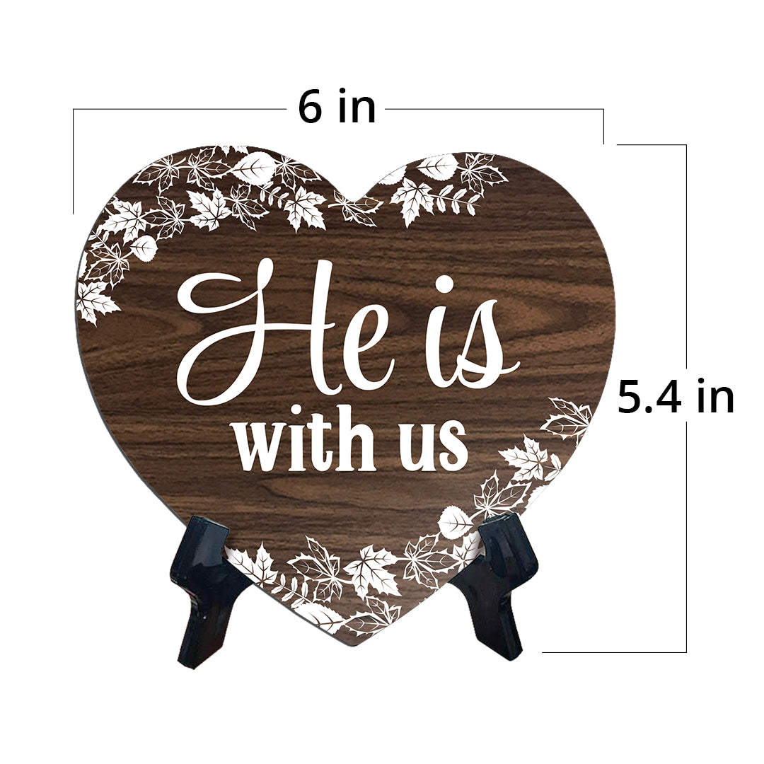 He Is With Us Heart Shape Table Sign (6 x 5.4")