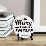 His Mercy Endures Forever Psalm 136:1 Circle Table Sign with Acrylic Stand (5x5")