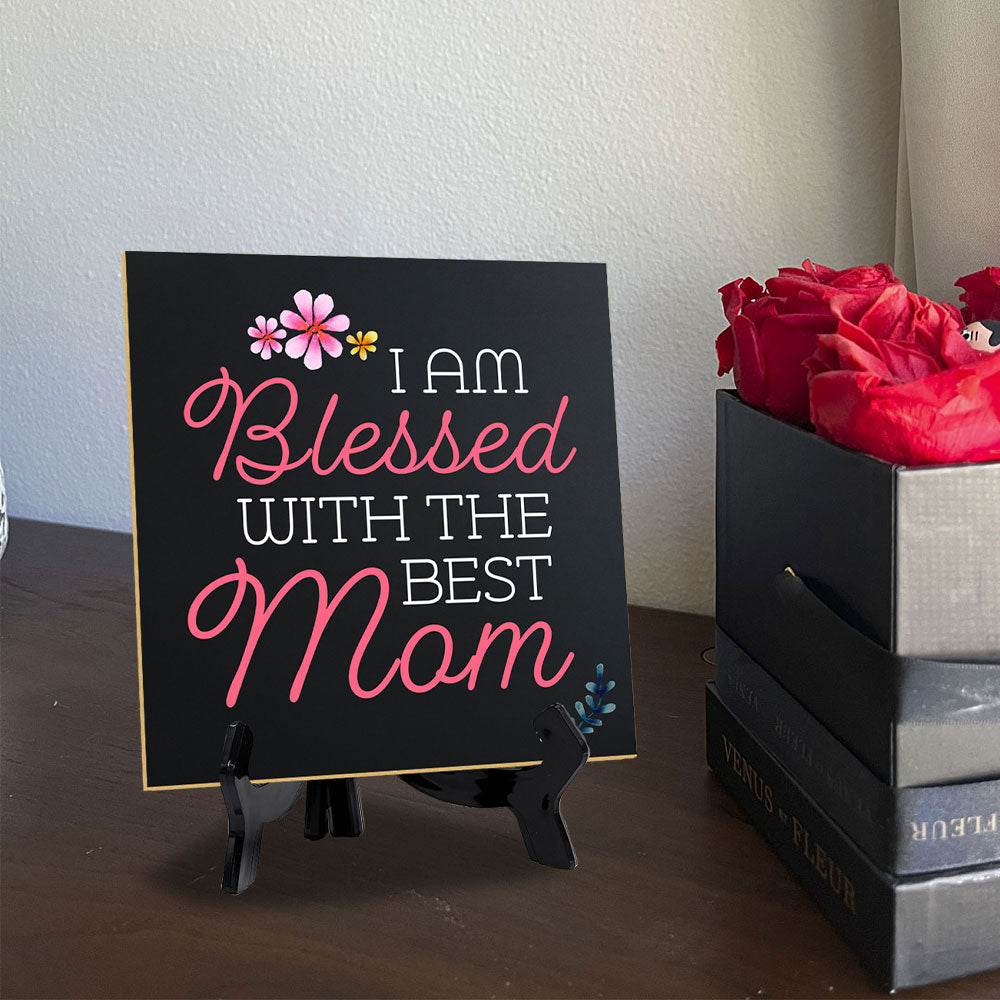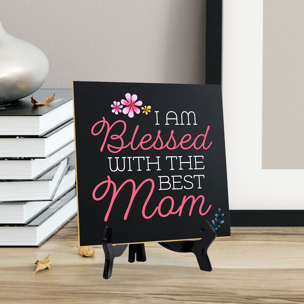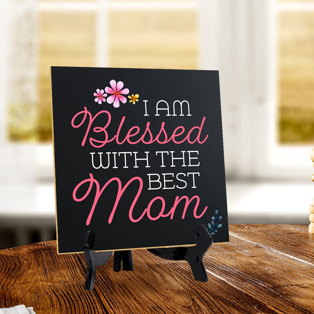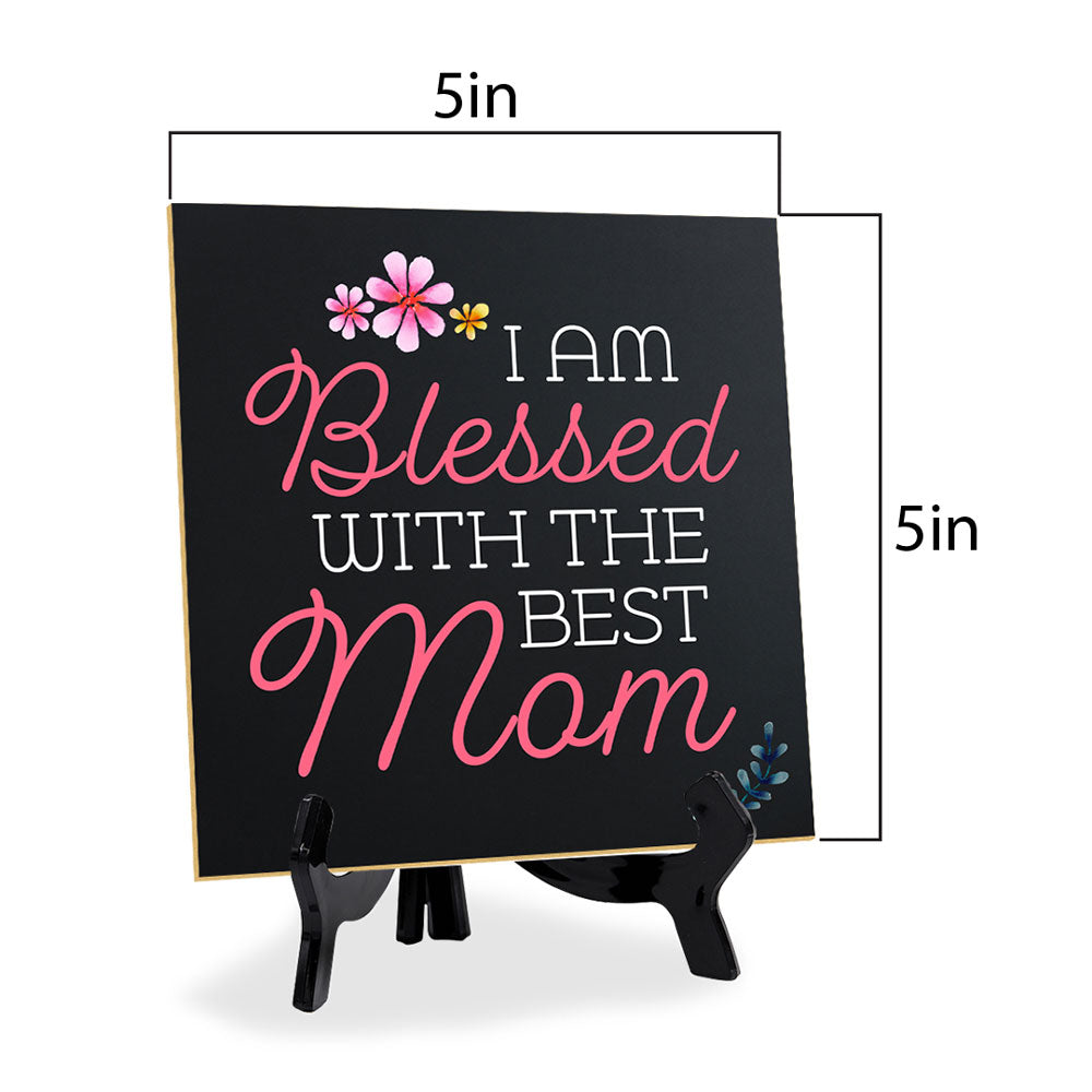 I Am Blessed With The Best Mom 5"x 5" Square Table Sign With Acrylic Easel