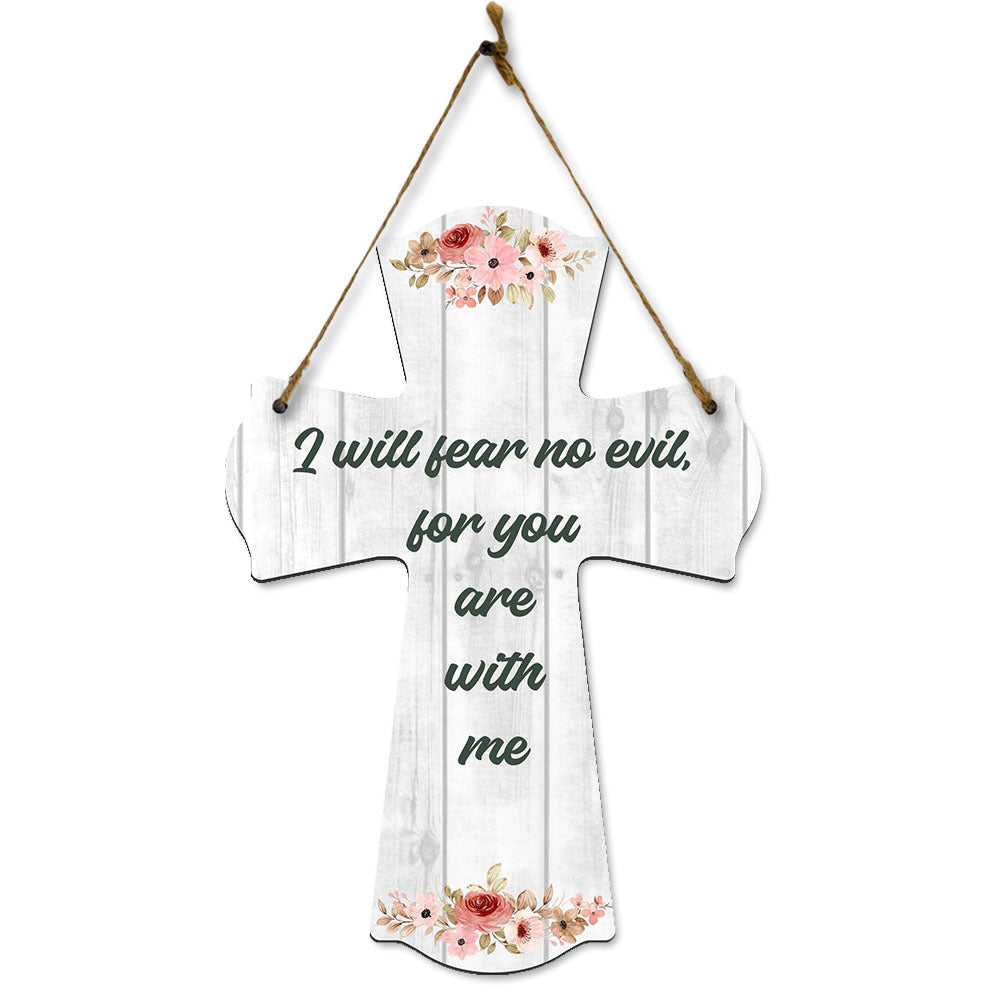 Introduce faith and elegance to any space with our I will fear no evil, for you are with me 11.5 x 8.5-inch hanging cross sign. Crafted from wood and hung by a piece of rustic twine, this simple and stylish design suits any space. Each cross is meticulously designed by...