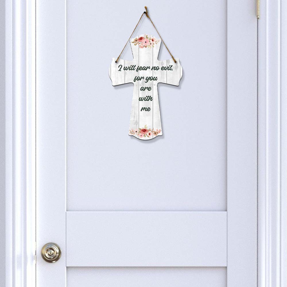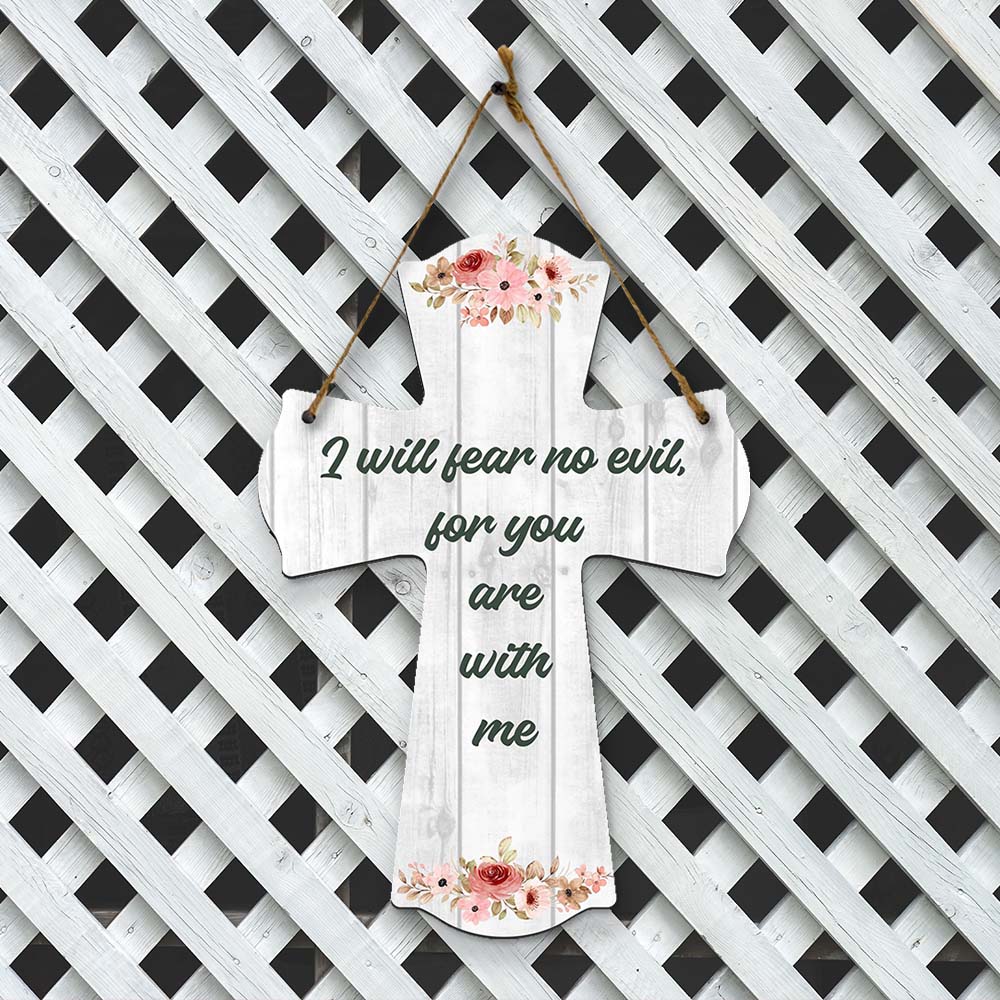 Introduce faith and elegance to any space with our I will fear no evil, for you are with me 11.5 x 8.5-inch hanging cross sign. Crafted from wood and hung by a piece of rustic twine, this simple and stylish design suits any space. Each cross is meticulously designed by our dedicated team, featuring carefully chosen messages of worship, scripture extracts, and heartfelt dedications of faith, making it a meaningful addition to any room. Whether displayed in your home, office, or place of worship, this hanging cross sign serves as a constant reminder of faith and inspiration. It's perfect for gifting on special occasions such as baptisms, birthdays, and weddings, or as a thoughtful way to celebrate and express your faith daily. Our hanging cross signs are not just decorations; they are symbols of devotion and cherished keepsakes that bring spiritual warmth and a sense of devotion into any environment. Celebrate and share your beliefs with this elegant and inspiring hanging Cross sign, a testament to your faith and a beautiful addition to any space.