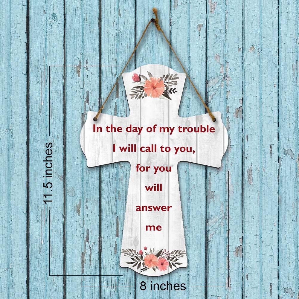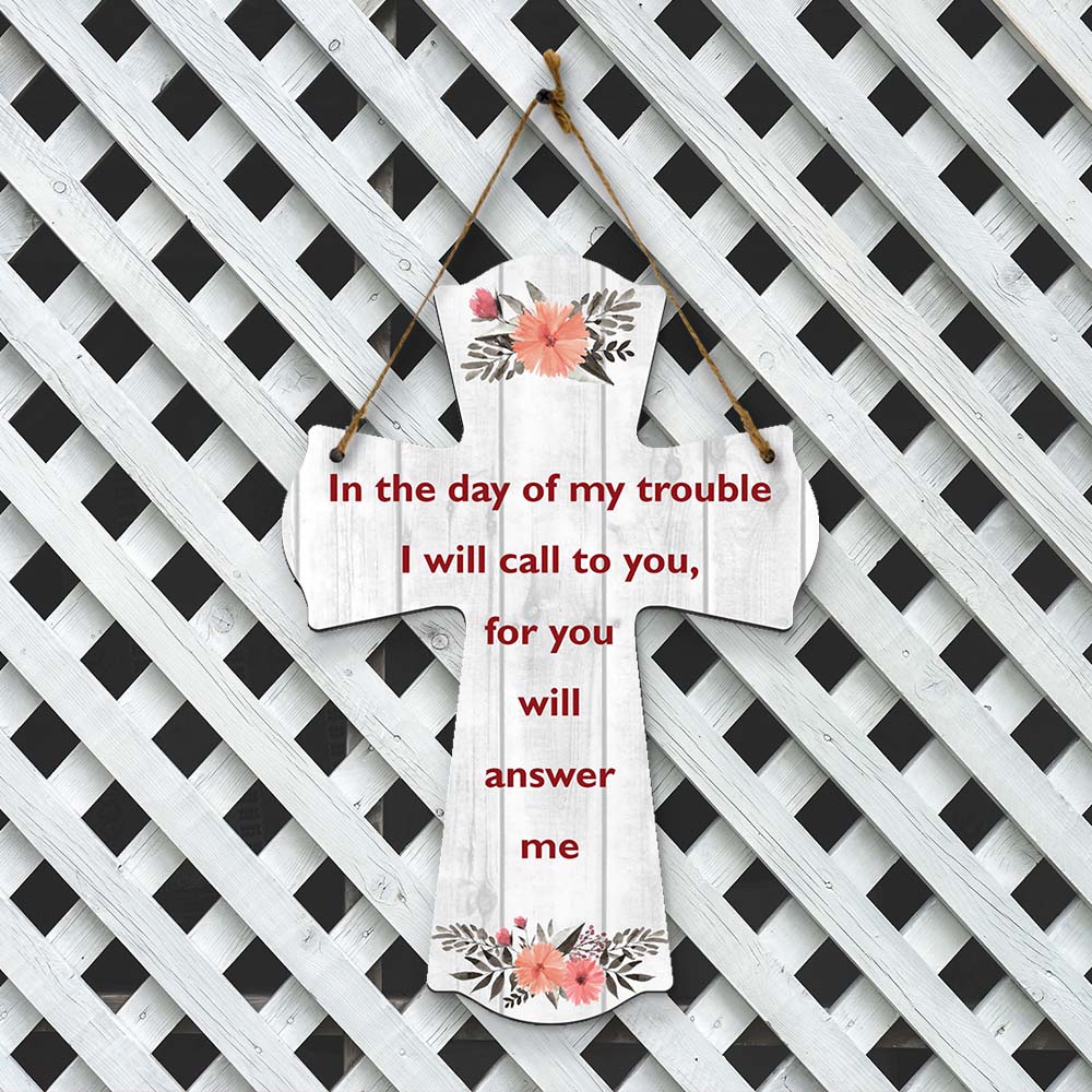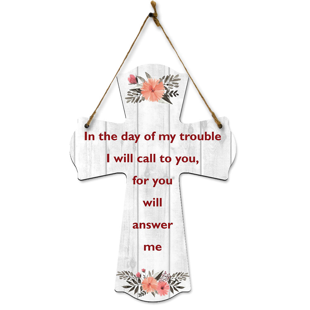 In the day of my trouble I will call to you, for you will answer me Cross Hanging Sign