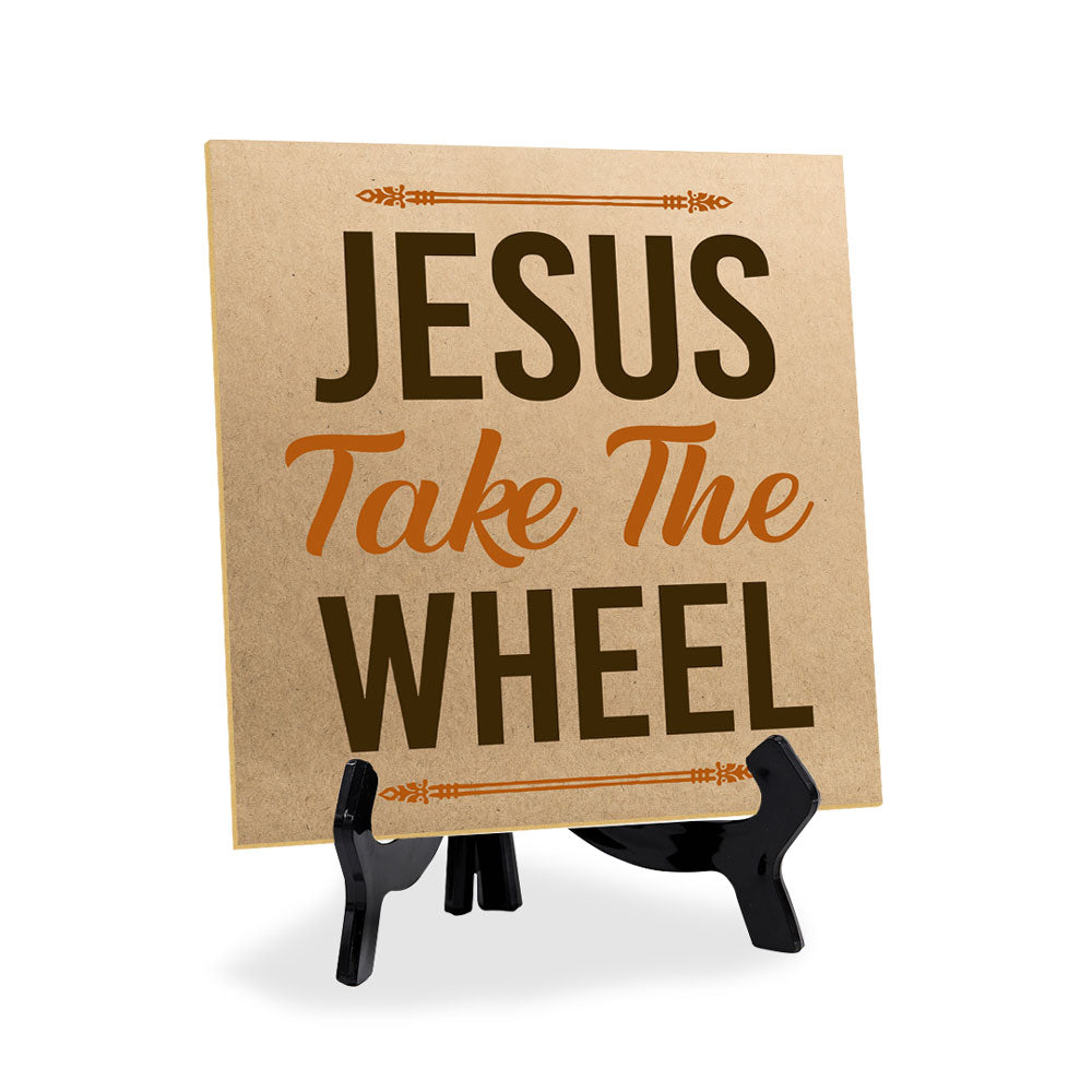 Jesus Take The Wheel 5"x 5" Square Table Sign With Acrylic Easel