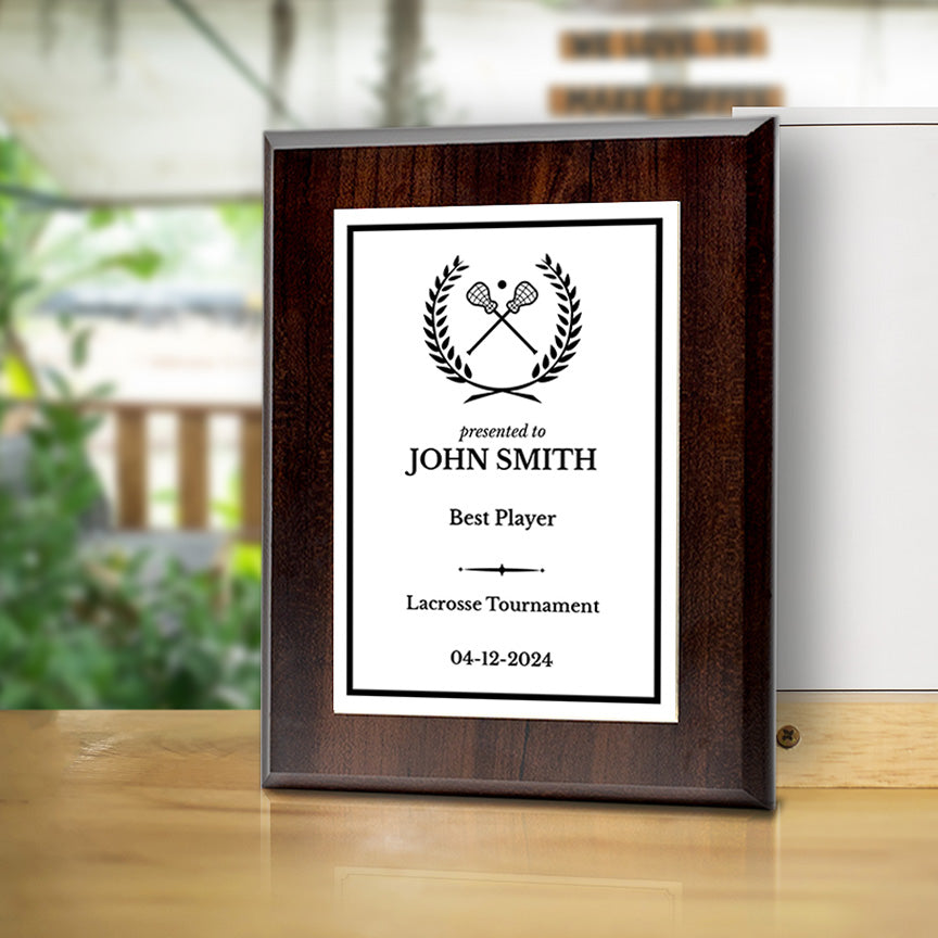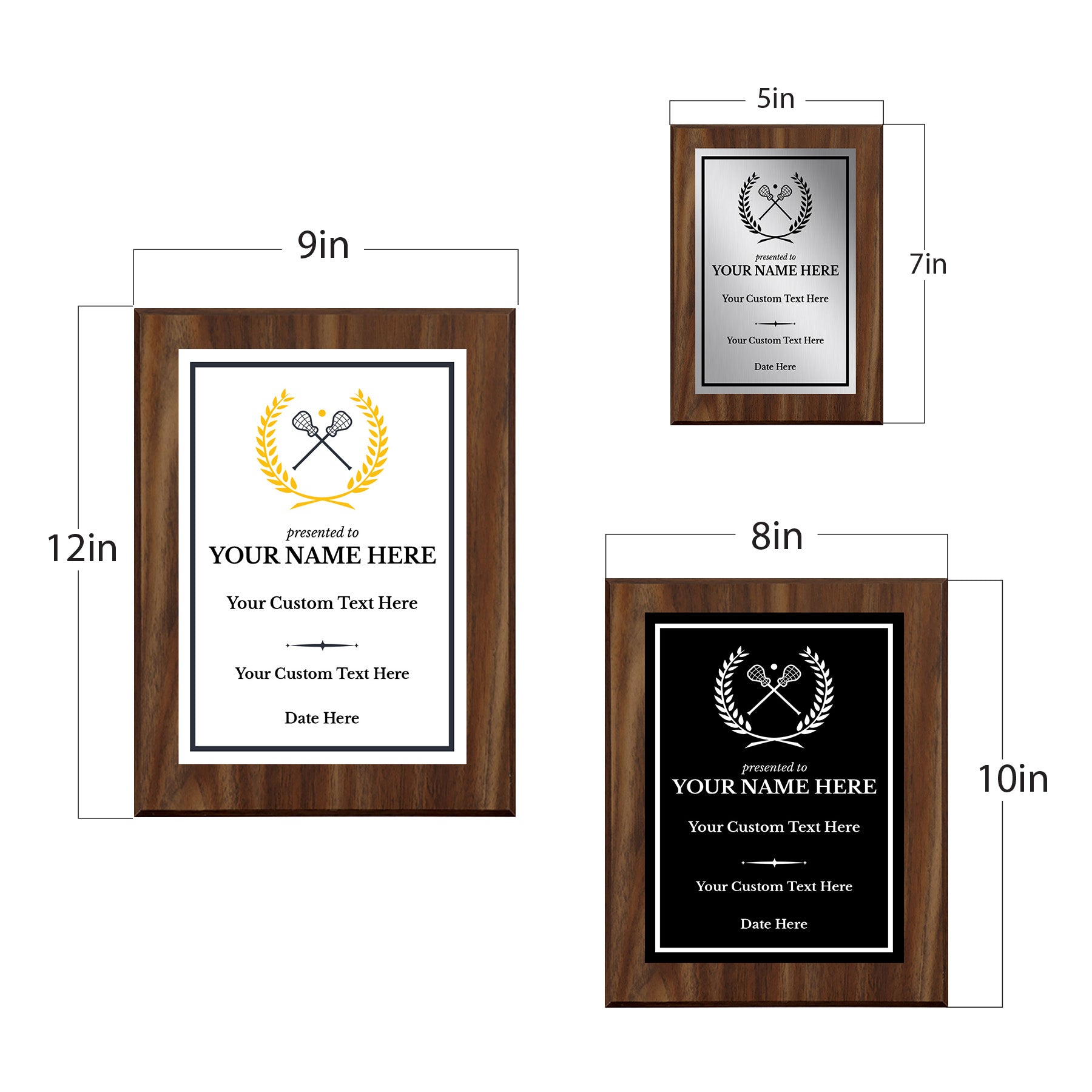 Celebrate an extraordinary achievement or milestone with the Signs ByLITA Custom Lacrosse Award Plaque. Our personalized plaques are the perfect way to honor and commemorate special moments, whether it's recognizing a career accomplishment, sport success, or any other noteworthy event. This Lacrosse Customizable Wooden Award Plaque is not just a decoration; it's a heartfelt expression of recognition and appreciation. Commemorate your special moments with a personalized touch that will be cherished for years to come. With three sizes and over 20 fonts to choose from, you can create the ideal personalized keepsake for any occasion. Our plaques come shrink-wrapped for added protection and with precut keyhole slots on the back for wall mounting. For a more versatile display option, choose our stylish black easel. Please double check that your text is correct and has no typos. We will make your plaque exactly as we receive the written custom inputs. If you make an error please cancel your order and re-order with your corrected text.