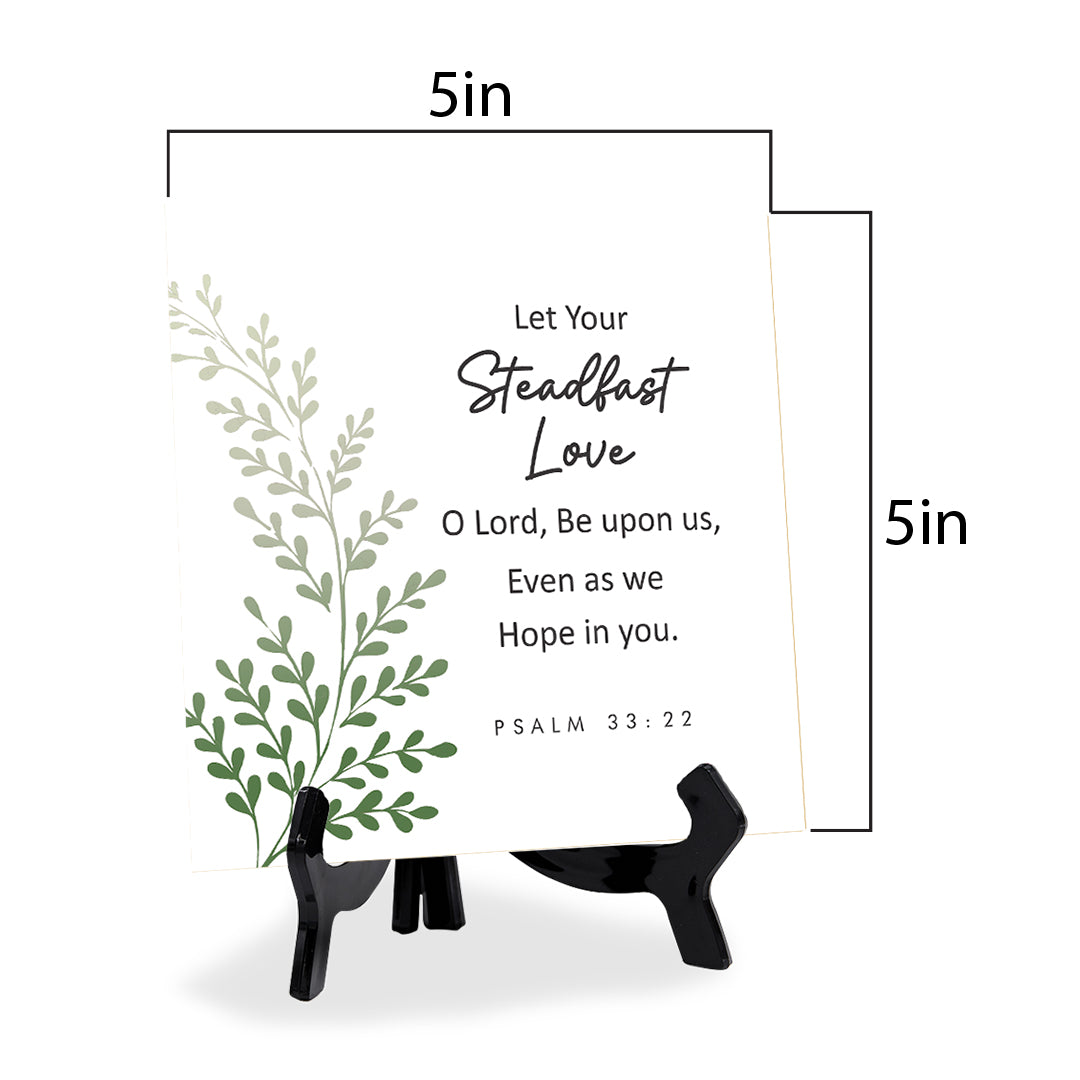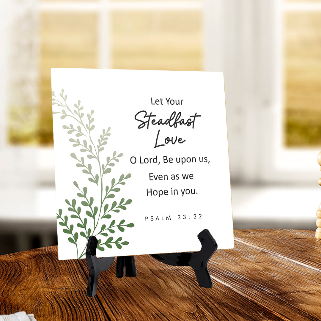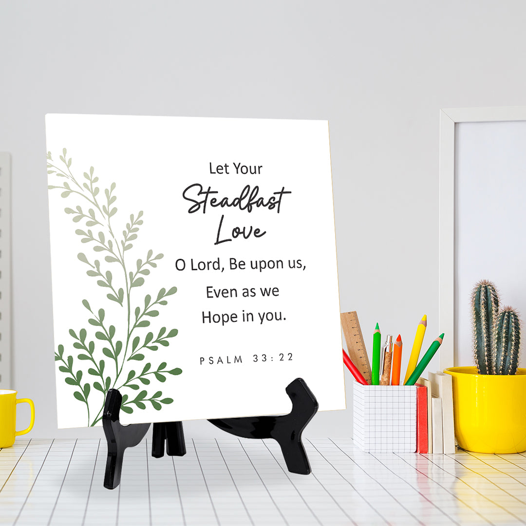 Let Your Steadfast Love, O Lord, Be Upon Us, Even As We Hope In You. Psalm 33:22 5"x 5" Square Table Sign With Acrylic Easel