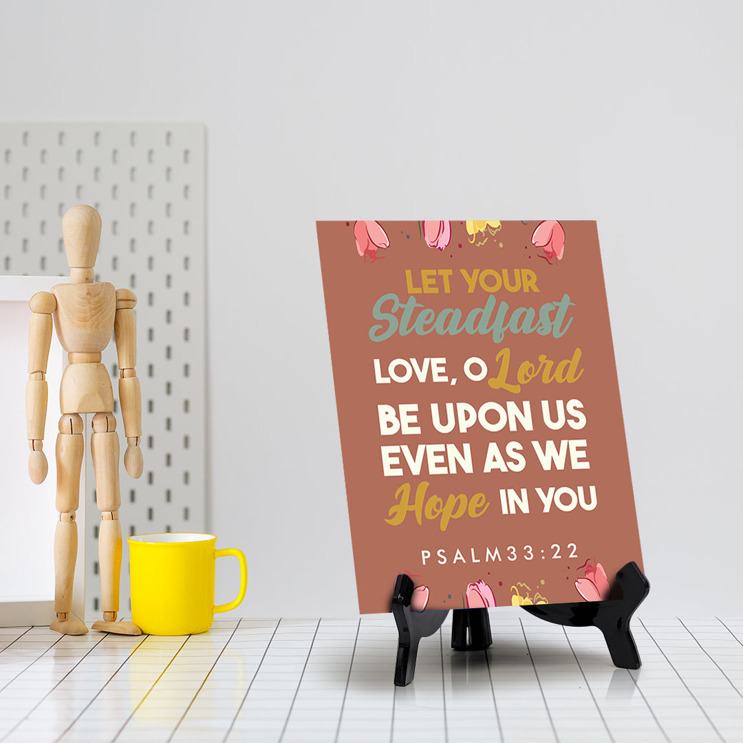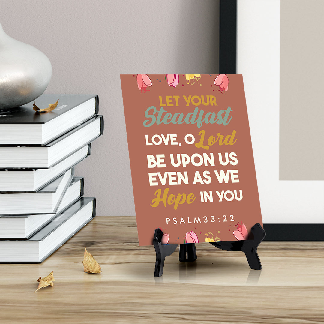 Let your steadfast love, O Lord be upon us even as we hope in you Psalm 33:22 6 x 8" Table Sign With Acrylic Easel
