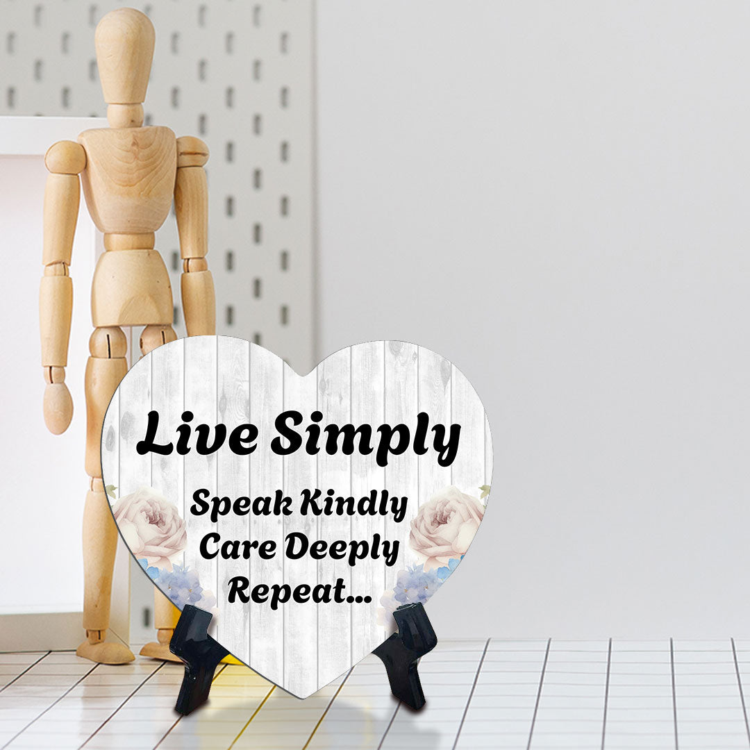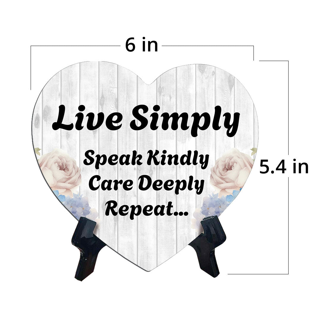 Live Simply Speak Kindly Care Deeply Repeat... Heart Table Sign with Acrylic Stand (6x5")