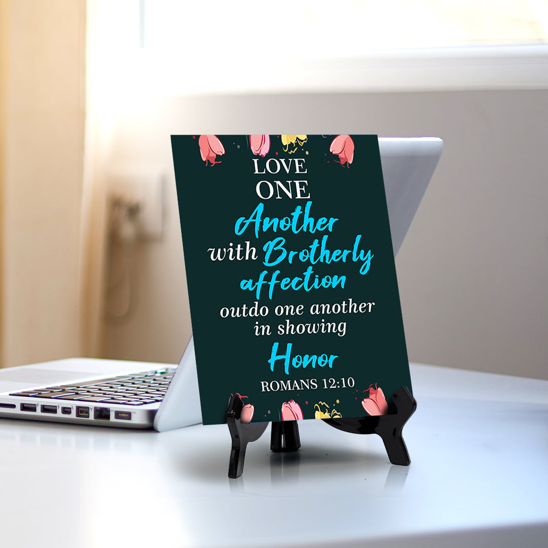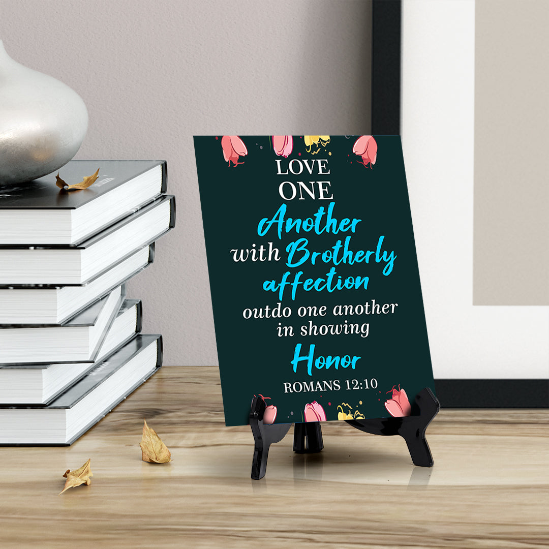 Love one another with brotherly affection Outdo one another in showing honor Romans 12:10 6 x 8" Table Sign With Acrylic Easel