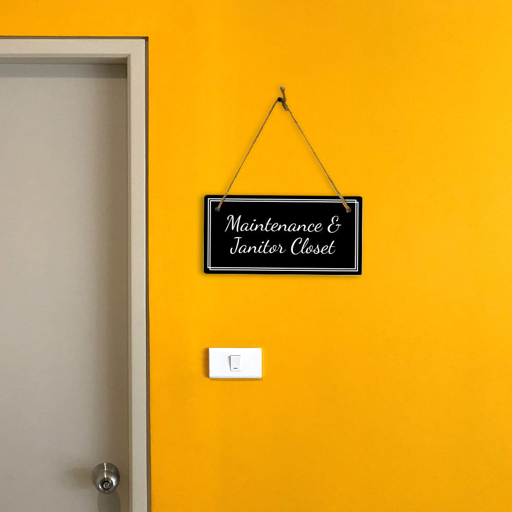 Introducing our versatile and stylish Maintenance & Janitor Closet, the perfect blend of style and sophistication to elevate your home or workplace. Our 5x10 Hanging Sign range is the perfect choice for your home, workplace or business. Each sign is attached with rustic twine, providing a charming and versatile accent for any space. Our curated designs effortlessly complement a variety of styles, from rustic farmhouse or Modern Chic, to simple and functional options. Choose from our diverse range of designs to personalize your space. Whether it's a warm welcome at the entrance, a motivational quote for your workspace, or a playful touch for the kids' room, our Hanging Wall or Door Signs are the perfect way to express your unique style.