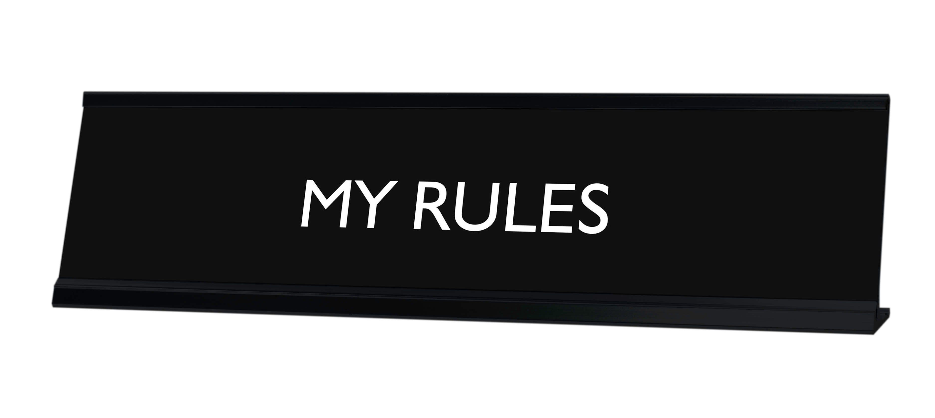 Novelty Desk Plate sign for the at home or work. The name plate is black with white lettering. Plate slides into a silver aluminum desk holder.