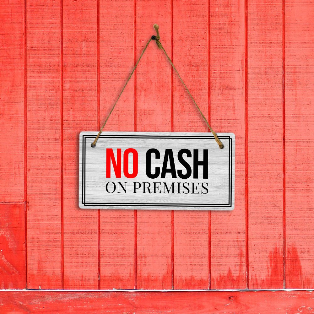 No Cash On Premises 5x10 Hanging Plus Wall or Door Sign