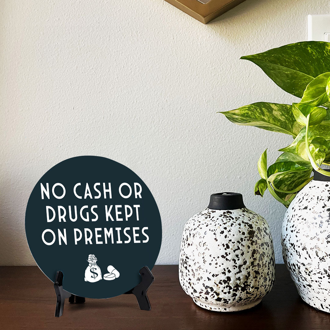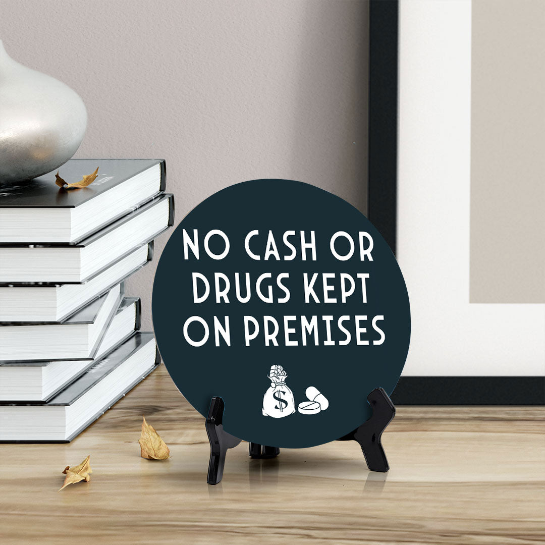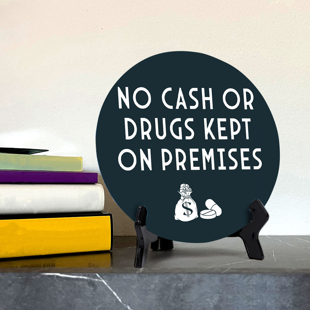 No Cash or Drugs Kept On Premises Circle Table Sign with Acrylic Stand (5x5")