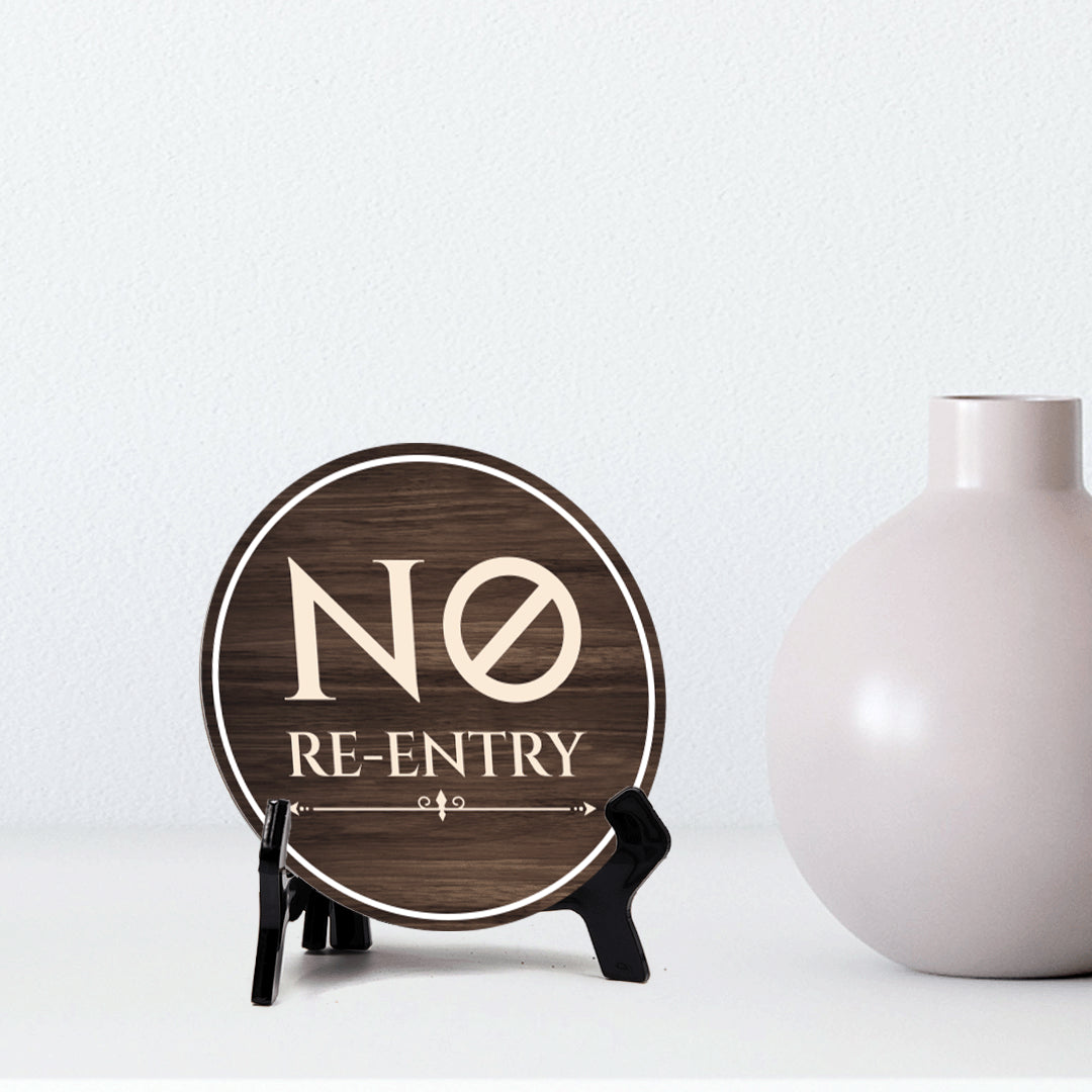 No Re-Entry Circle Table Sign with Acrylic Stand (5x5")