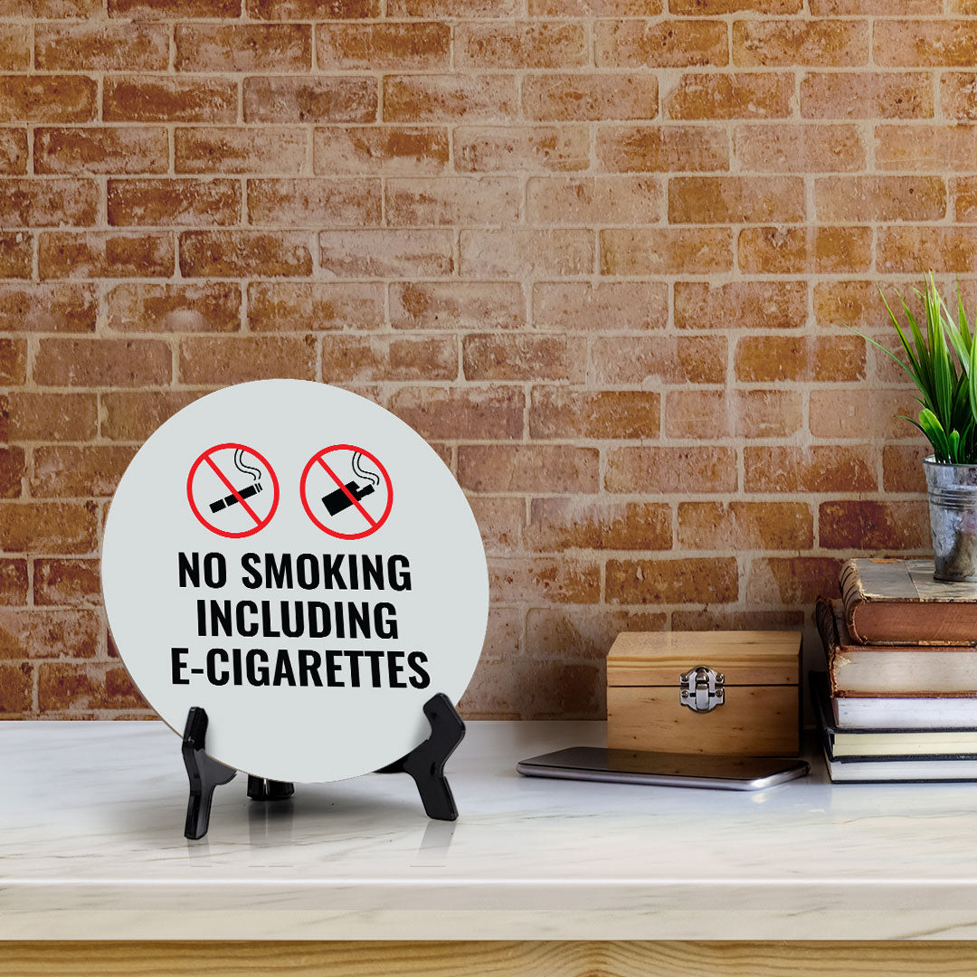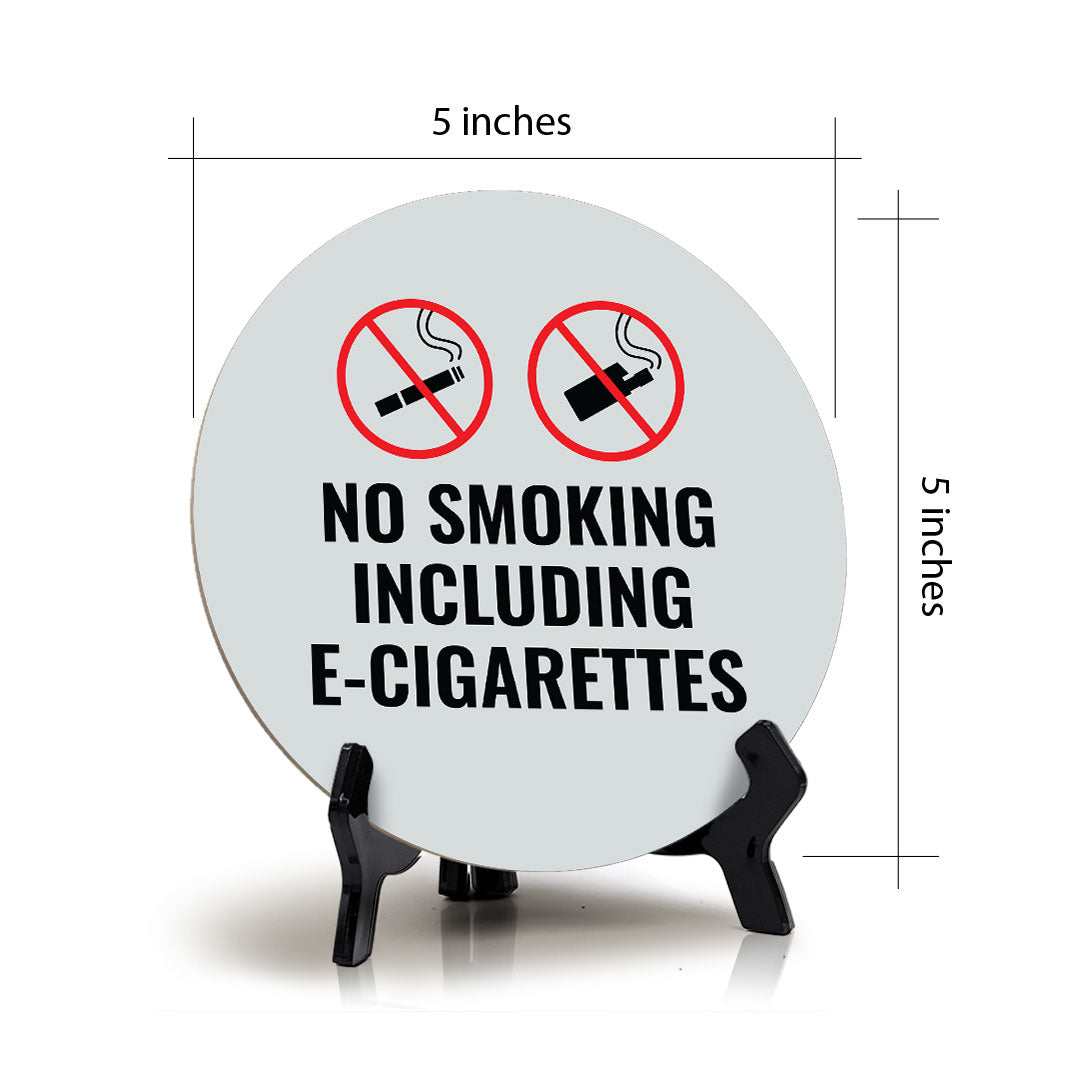 No Smoking Including E-Cigarettes Circle Table Sign with Acrylic Stand (5x5")