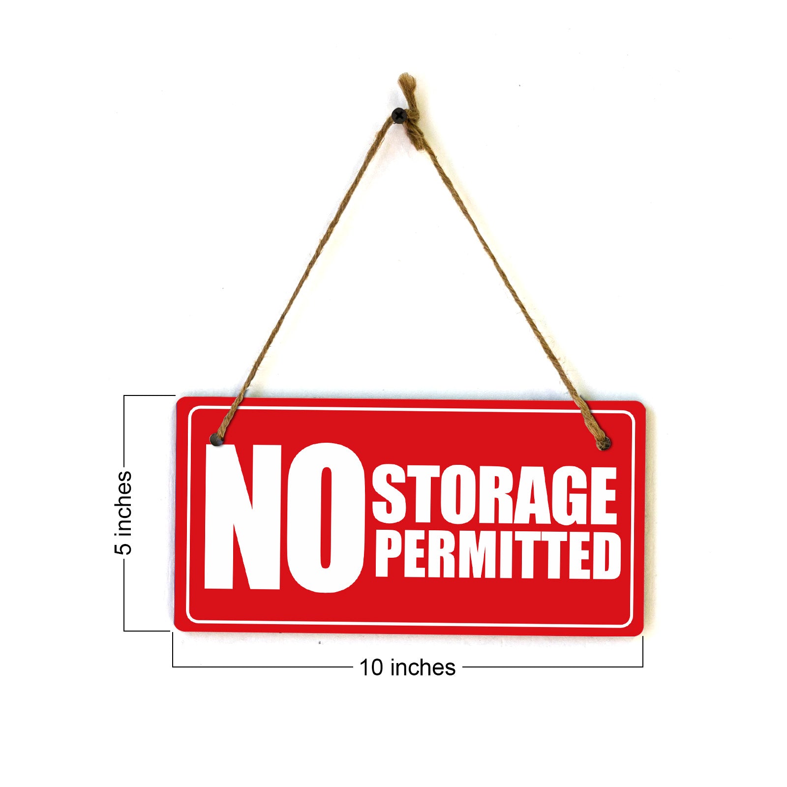 Introducing our versatile and stylish No Storage Permitted, the perfect blend of style and sophistication to elevate your home or workplace. Our 5x10 Hanging Sign range is the perfect choice for your home, workplace or business. Each sign is attached with rustic twine, providing a charming and versatile accent for any space. Our curated designs effortlessly complement a variety of styles, from rustic farmhouse or Modern Chic, to simple and functional options. Choose from our diverse range of designs to personalize your space. Whether it's a warm welcome at the entrance, a motivational quote for your workspace, or a playful touch for the kids' room, our Hanging Wall or Door Signs are the perfect way to express your unique style.