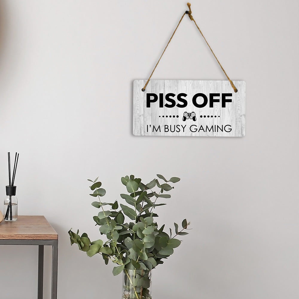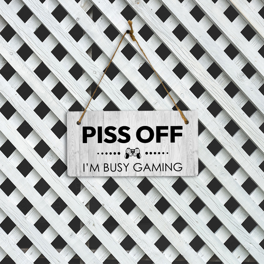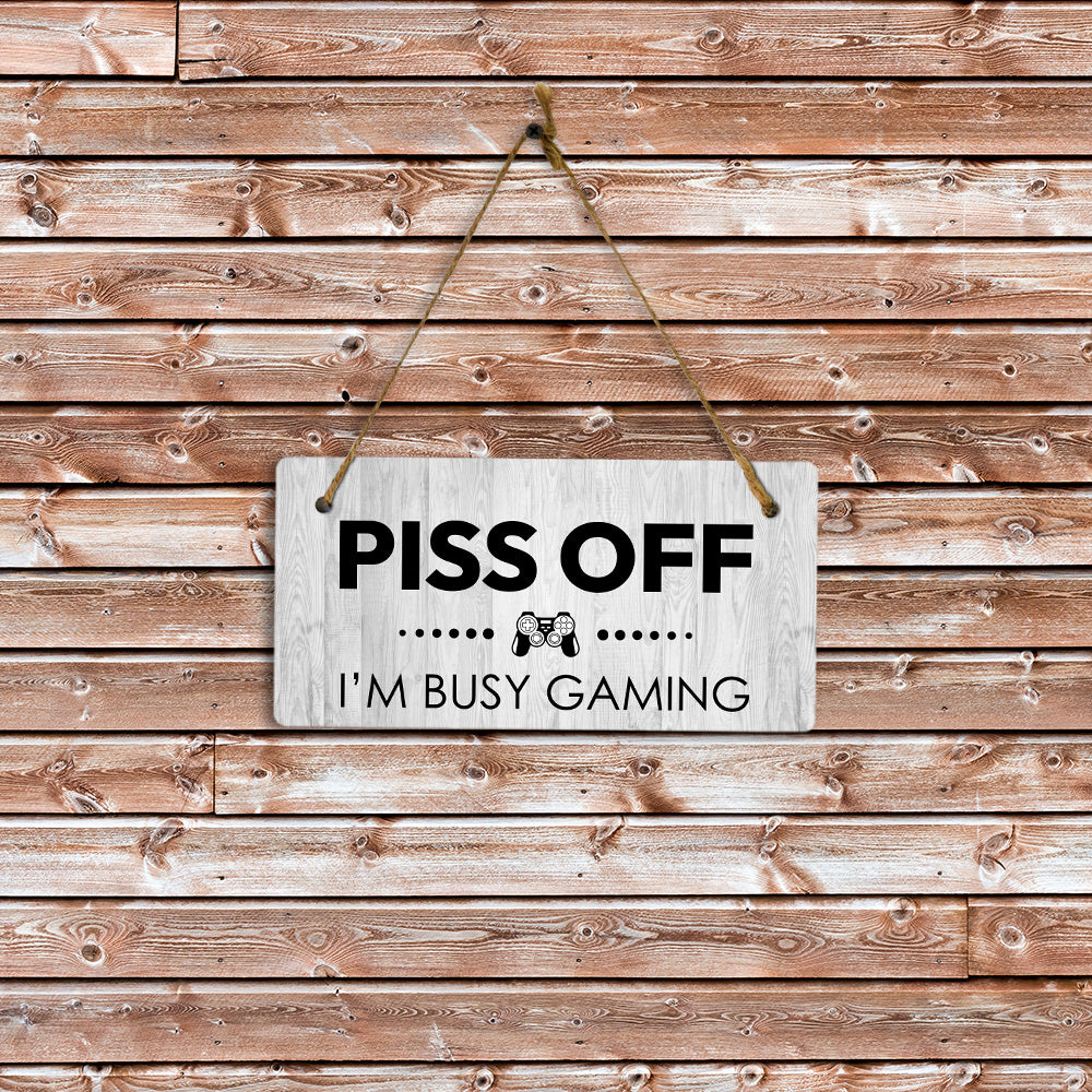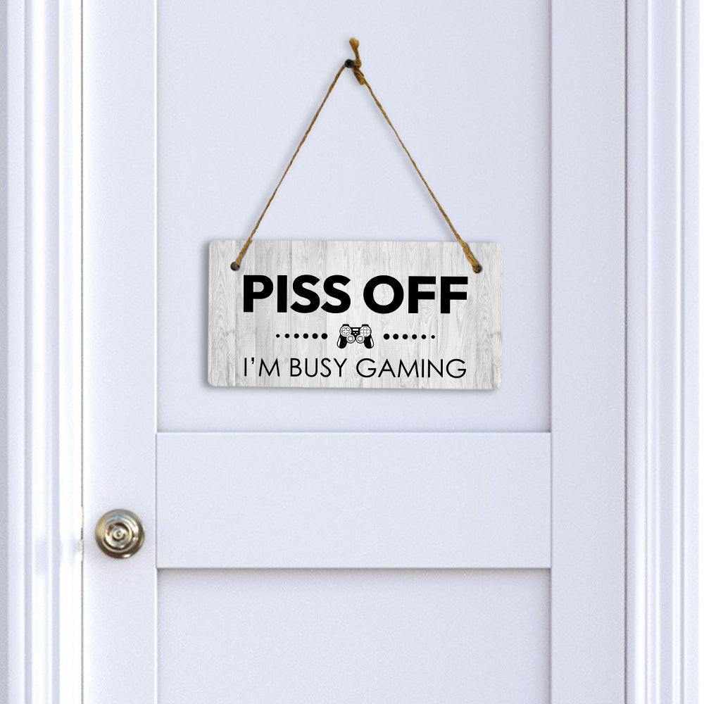 Piss Off I'm Busy Gaming 5x10 Hanging Plus Wall or Door Sign
