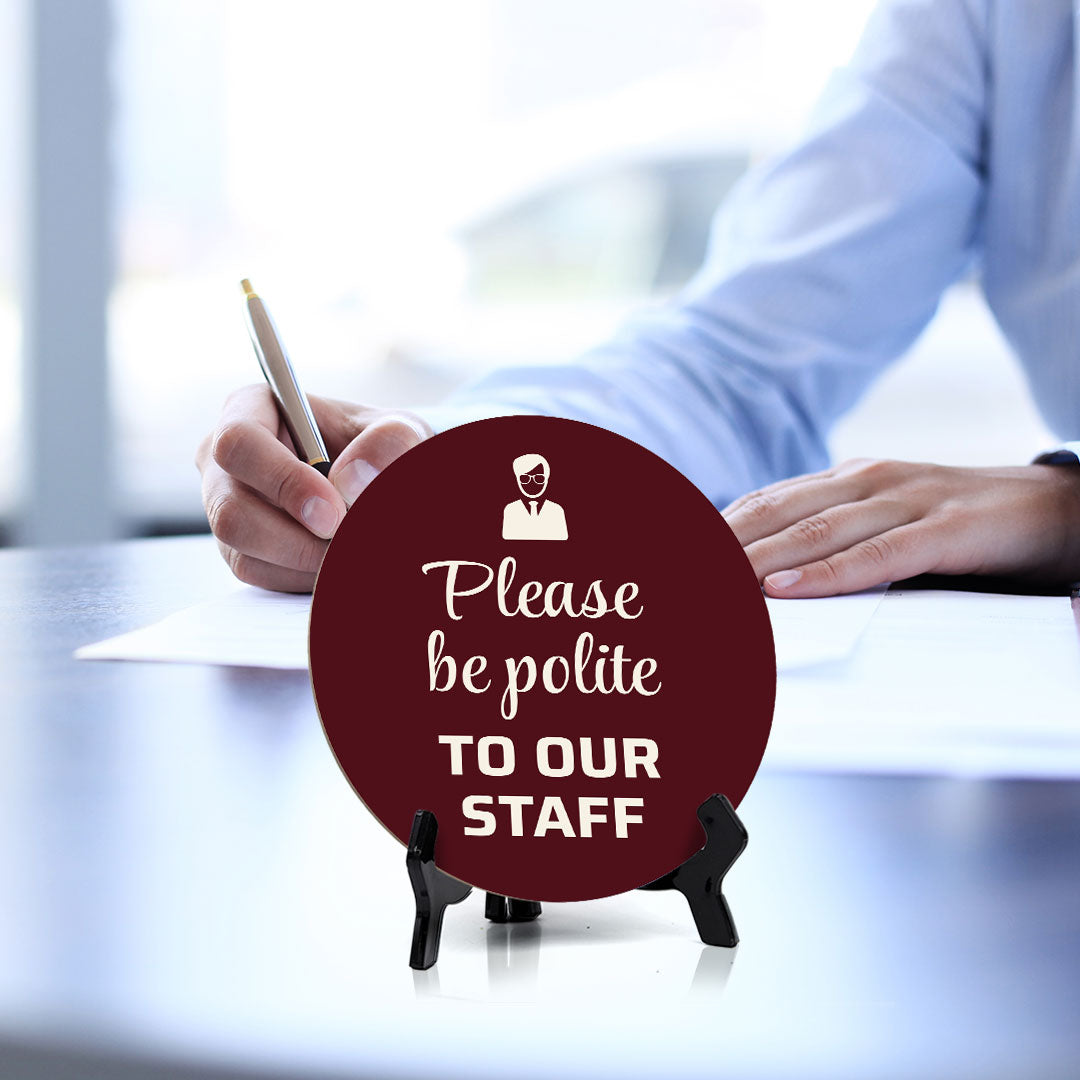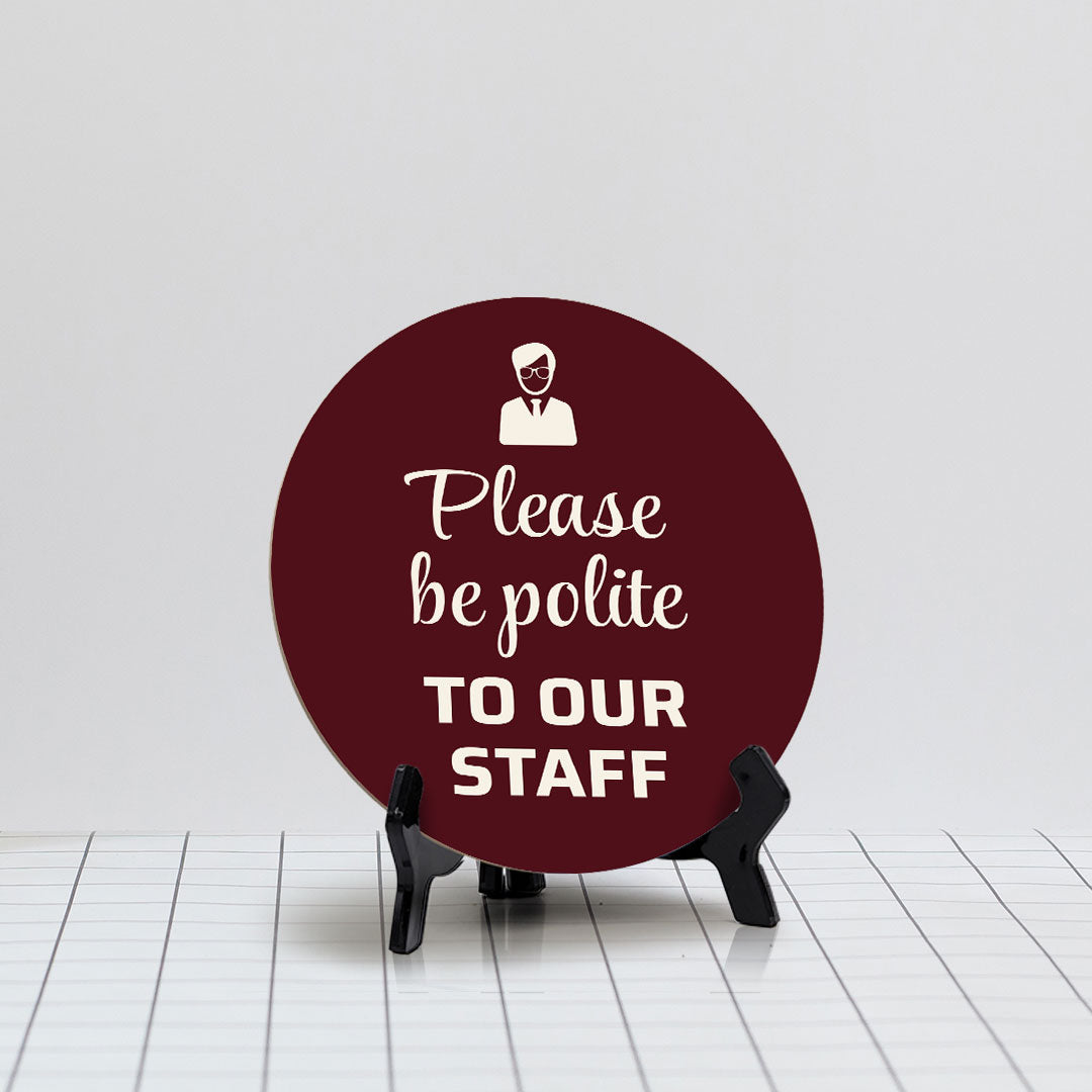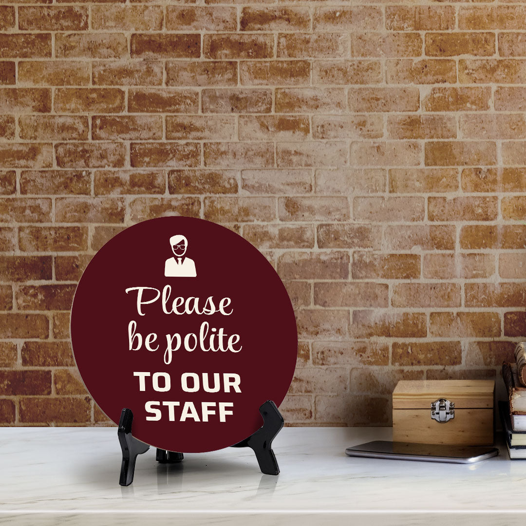 Please Be Polite To Our Staff Circle Table Sign with Acrylic Stand (5x5")