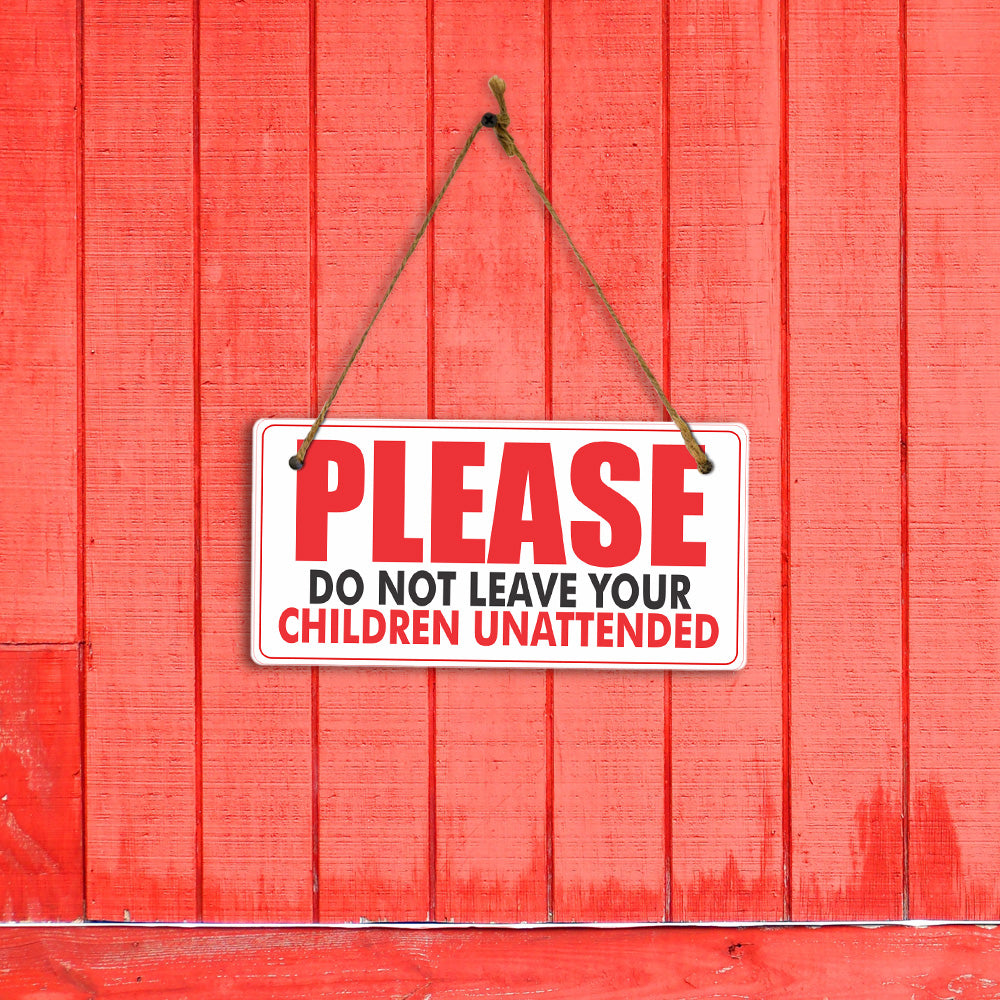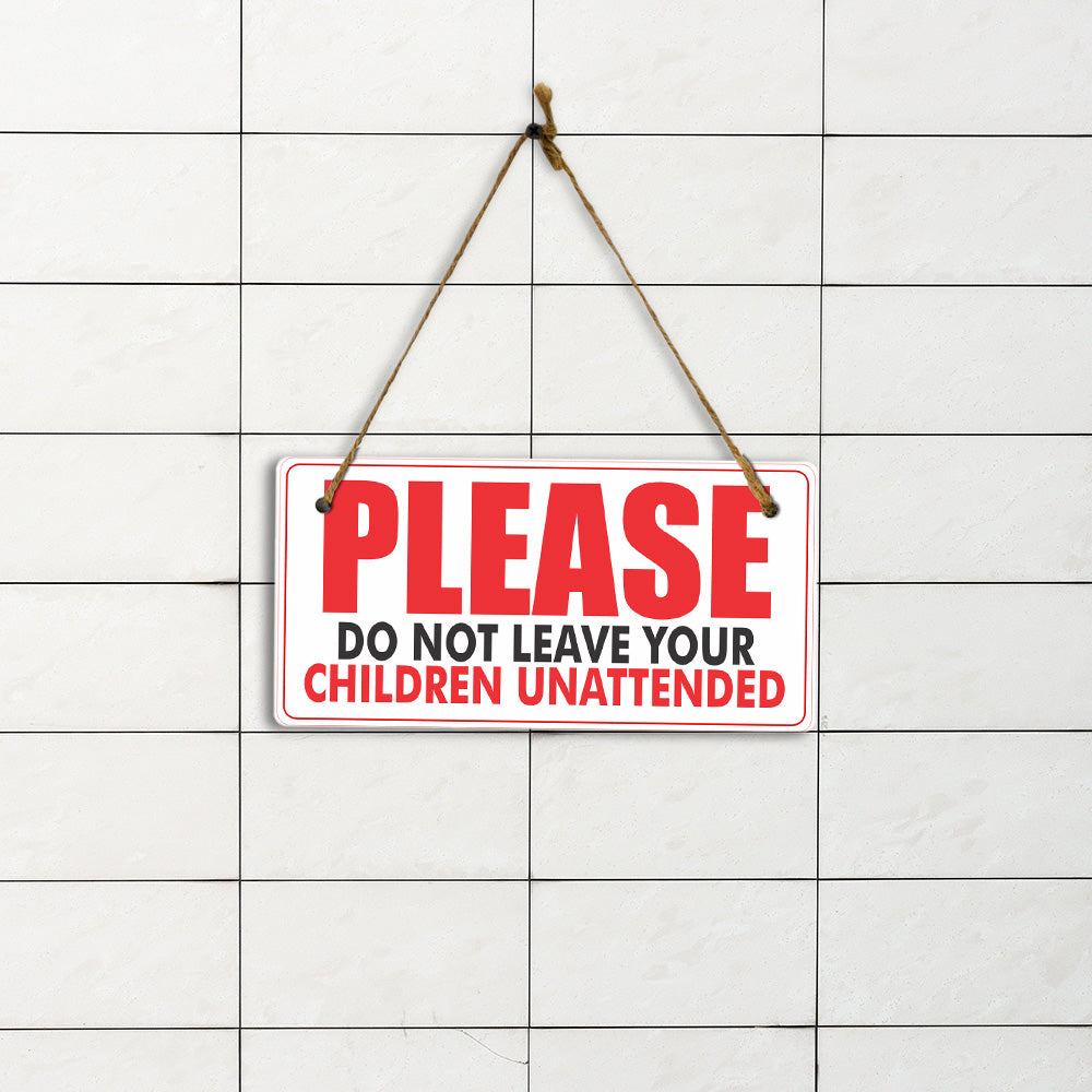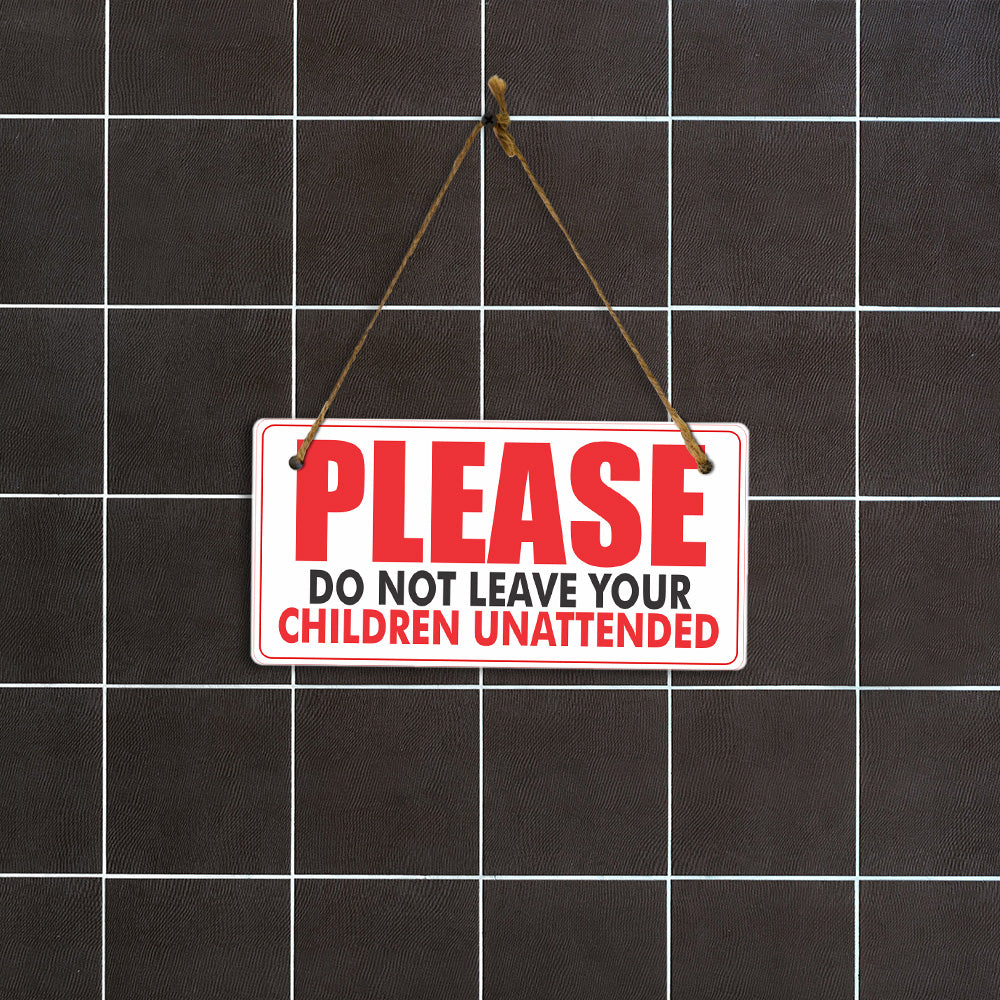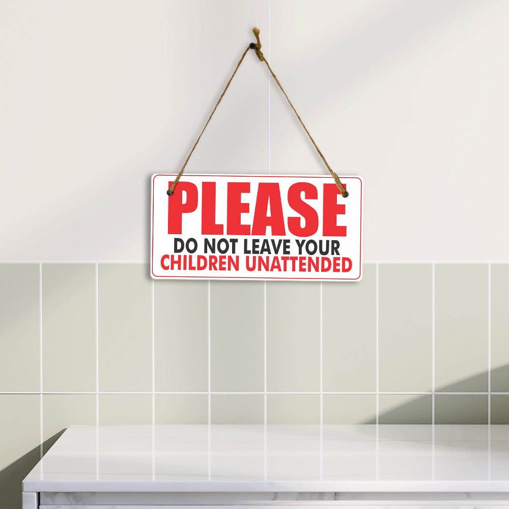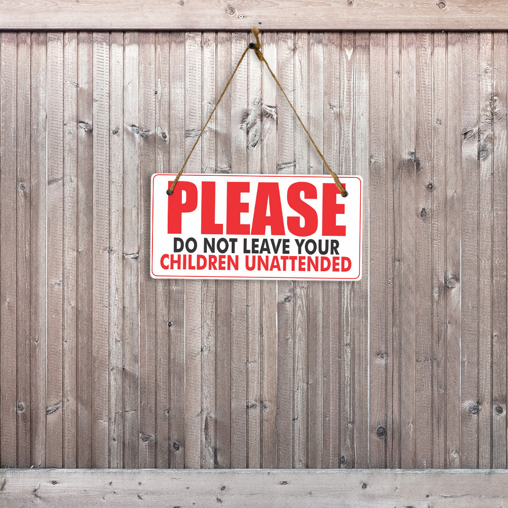 Please Do Not Leave Your Children Unattended 5x10 Hanging Plus Wall or Door Sign