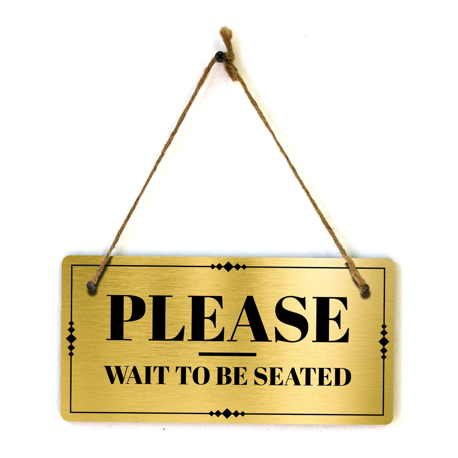 Introducing our versatile and stylish Please Wait To Be Seated, the perfect blend of style and sophistication to elevate your home or workplace. Our 5x10 Hanging Sign range is the perfect choice for your home, workplace or business. Each sign is attached with rustic twine, providing a charming and versatile accent for any space. Our curated designs effortlessly complement a variety of styles, from rustic farmhouse or Modern Chic, to simple and functional options. Choose from our diverse range of designs to personalize your space. Whether it's a warm welcome at the entrance, a motivational quote for your workspace, or a playful touch for the kids' room, our Hanging Wall or Door Signs are the perfect way to express your unique style.