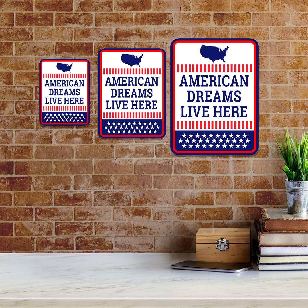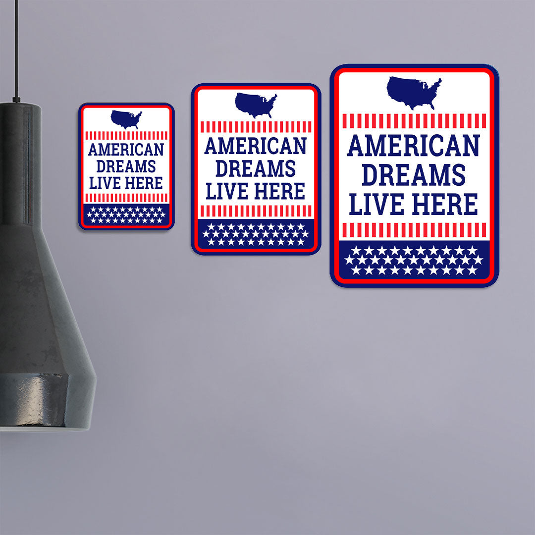 Elevate your business or home environment with Signs ByLITA's premium signs. Our Portrait Round Plus American Dreams Live Here Wall or Door Sign is designed to enhance your workspace with style, while sending a clear message. These signs feature vivid sublimation printing that ensures clear and lasting colors, making a powerful visual impact. Installation is a breeze with double-sided adhesive foam tape, providing a secure hold without surface damage. Crafted from durable reinforced plastic, our Portrait Round Plus American Dreams Live Here Wall or Door Sign is built to withstand daily wear and environmental conditions, eliminating the need for frequent replacements. These versatile signs find applications in various settings, from office doors and meeting rooms to displaying essential information or adding a touch of sophistication to your home decor. Signs ByLITA are the ideal choice for corporate offices, medical facilities, schools, and more. Our American Dreams Live Here Sign offers a practical and stylish solution to elevate your workspace. Invest in these signs today to make a lasting impression, enhance professionalism, safety and security and transform your workspace into a welcoming and professional environment.