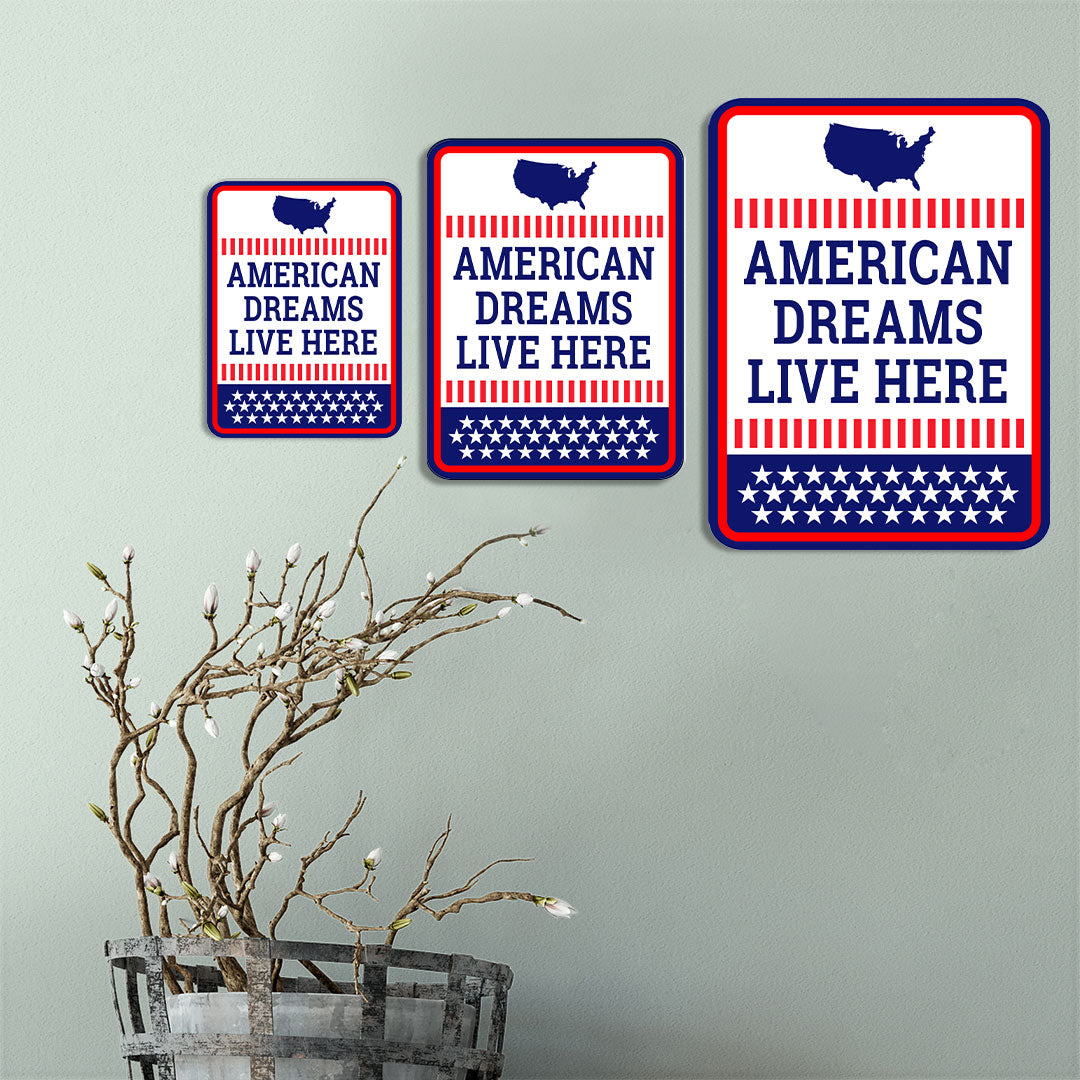 Portrait Round Plus American Dreams Live Here Door or Wall Sign