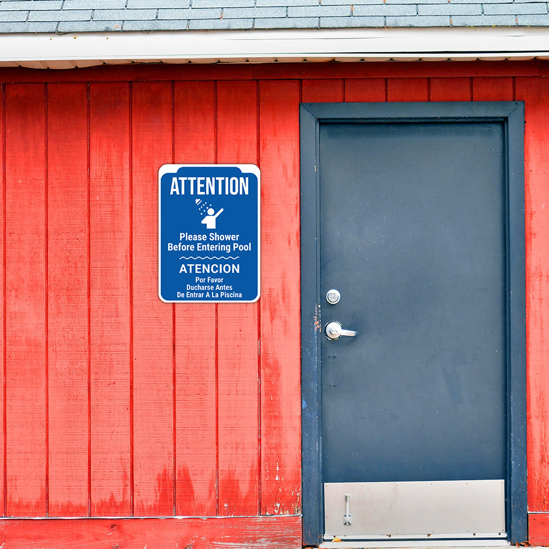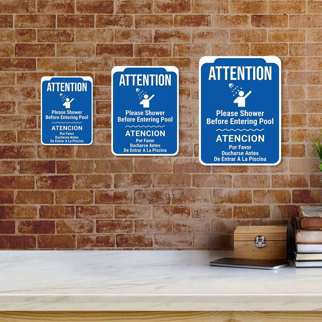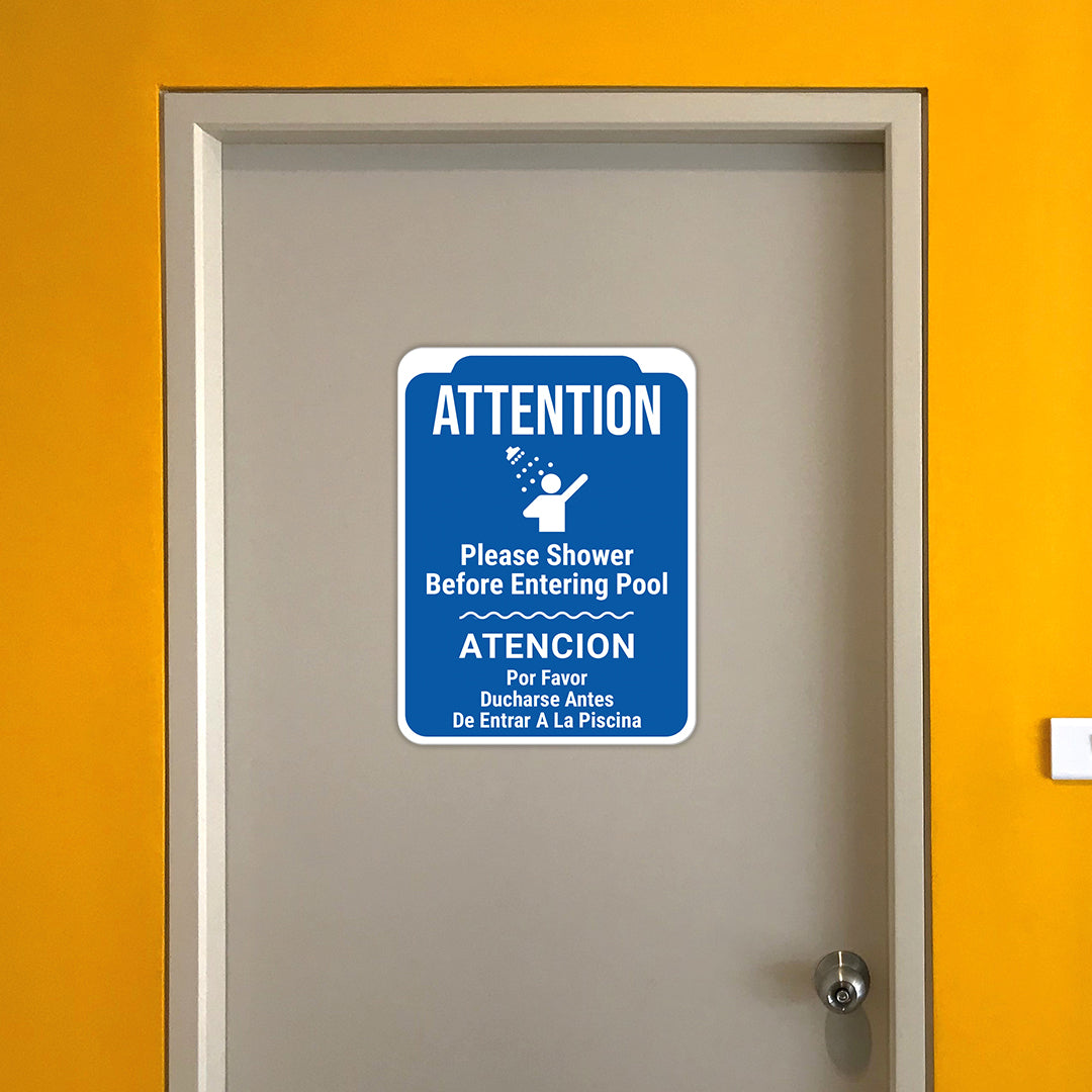 Elevate your business or home environment with Signs ByLITA's premium signs. Our Portrait Round Plus Attention Please Shower Before Entering Pool Atencion Por Favor Ducharse Antes De Entrar A La Piscina Wall or Door Sign is designed to enhance your workspace with style, while sending a clear message. These signs...