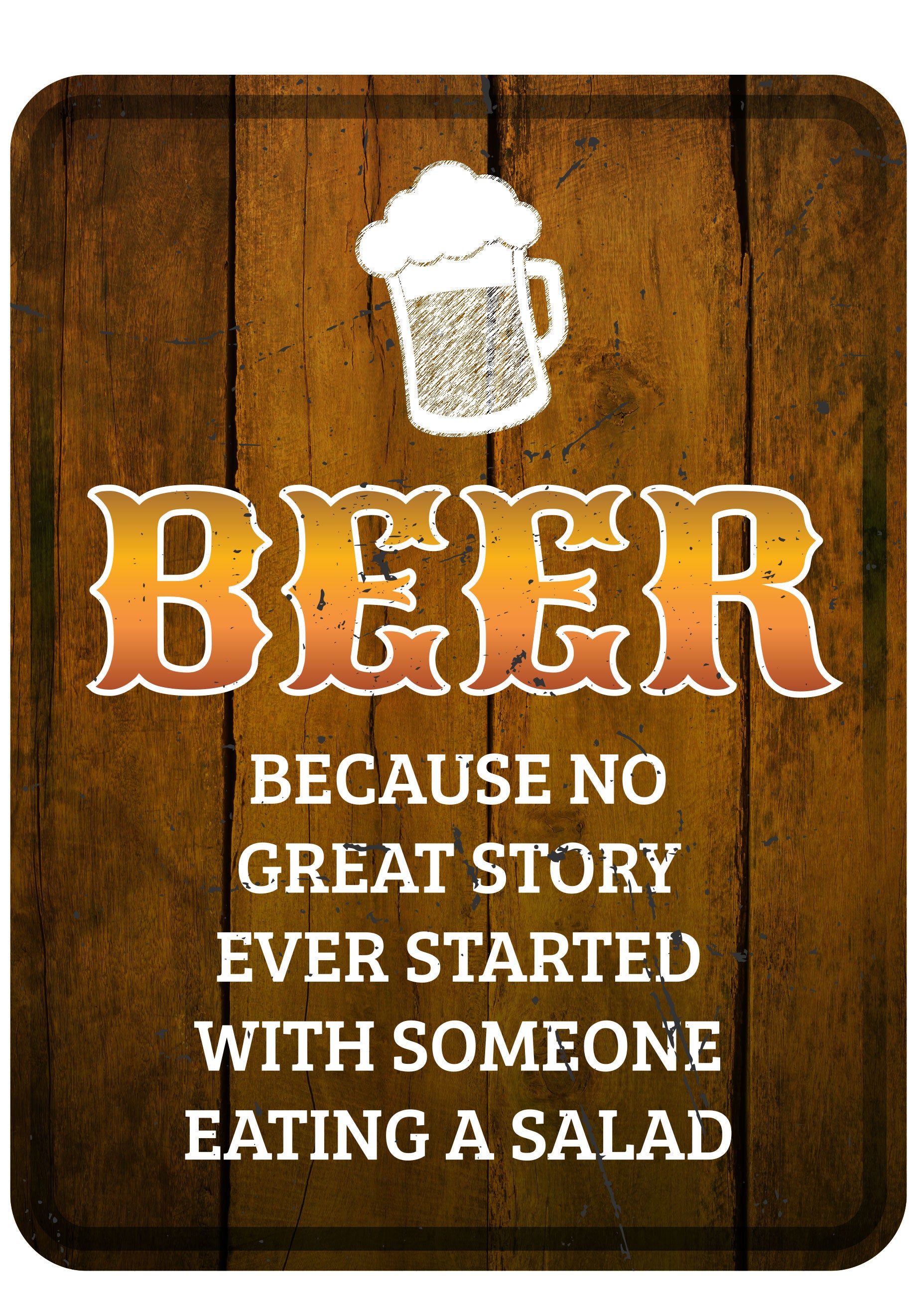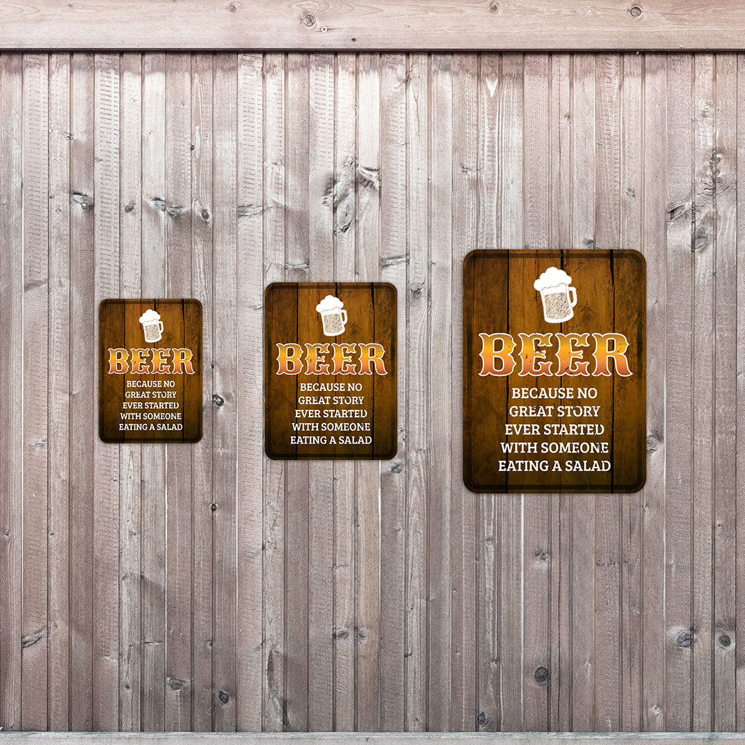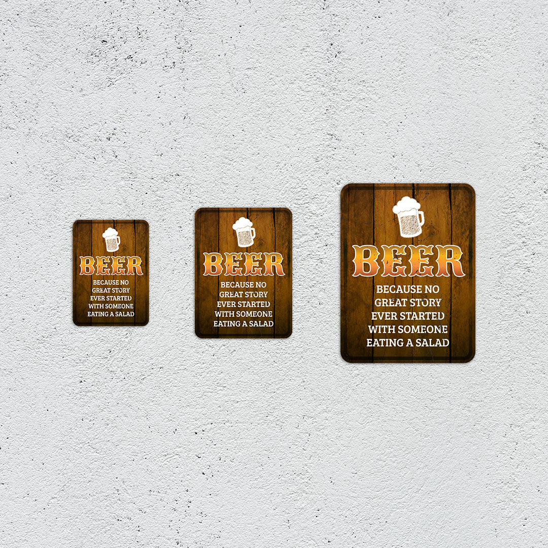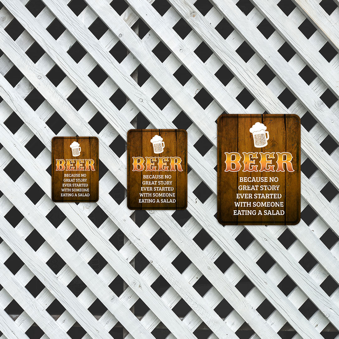 Elevate your business or home environment with Signs ByLITA's premium signs. Our Portrait Round Plus Beer Because No Great Story Ever Started With Someone Eating A Salad Wall or Door Sign is designed to enhance your workspace with style, while sending a clear message. These signs feature vivid sublimation printing...