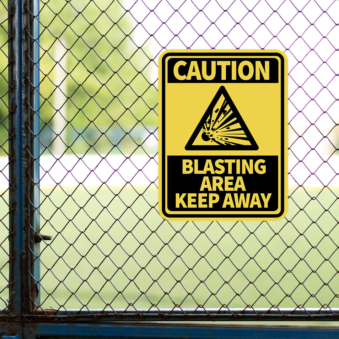 Portrait Round Plus Caution Blasting Area Keep Away Wall or Door Sign