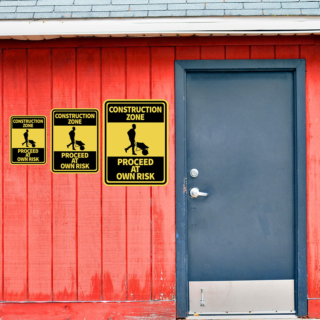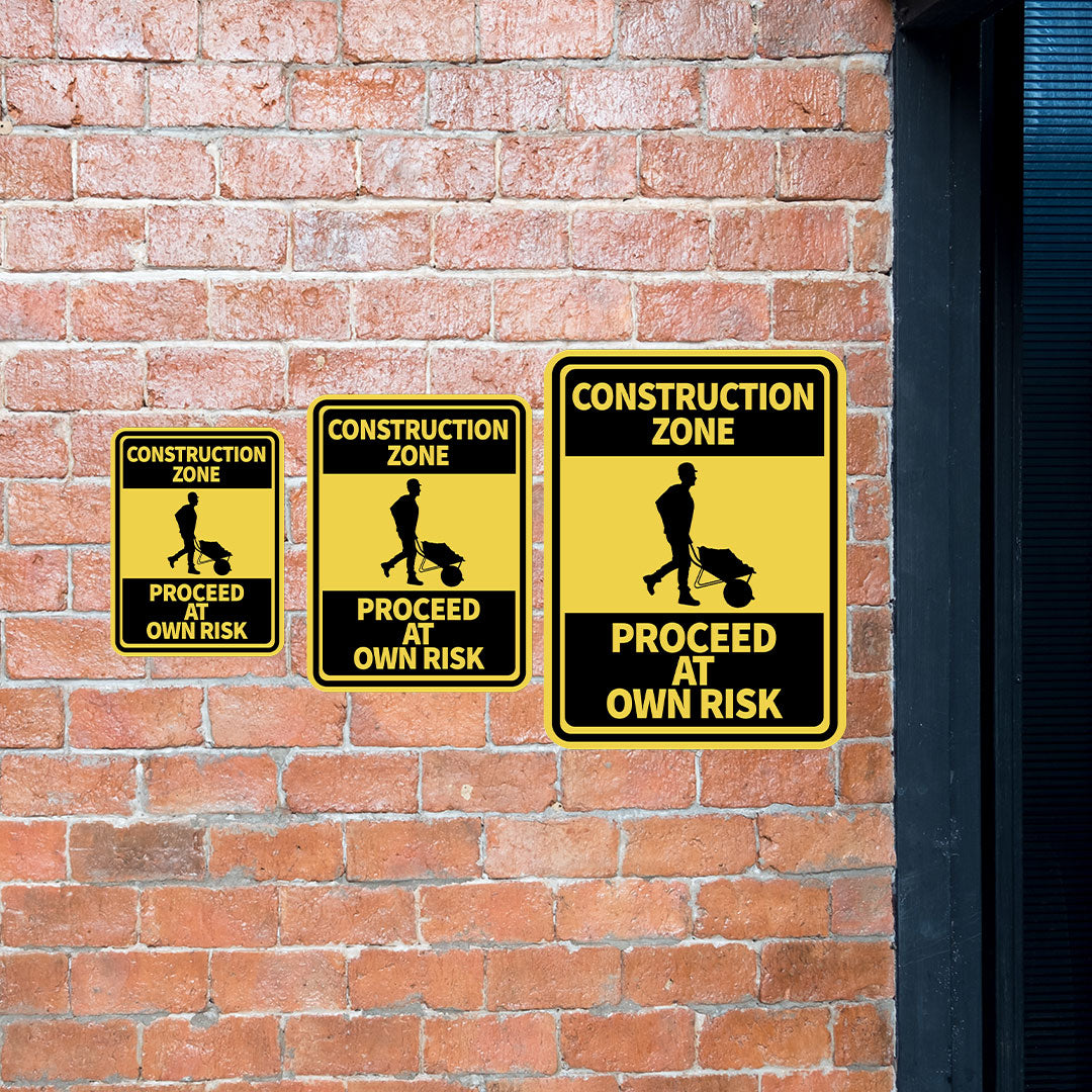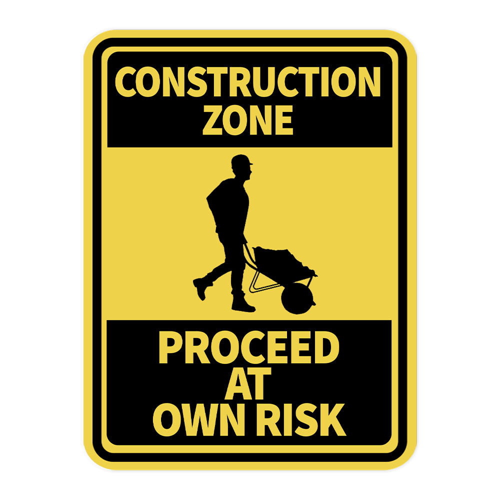 Portrait Round Plus Construction Zone Proceed At Own Risk Wall or Door Sign