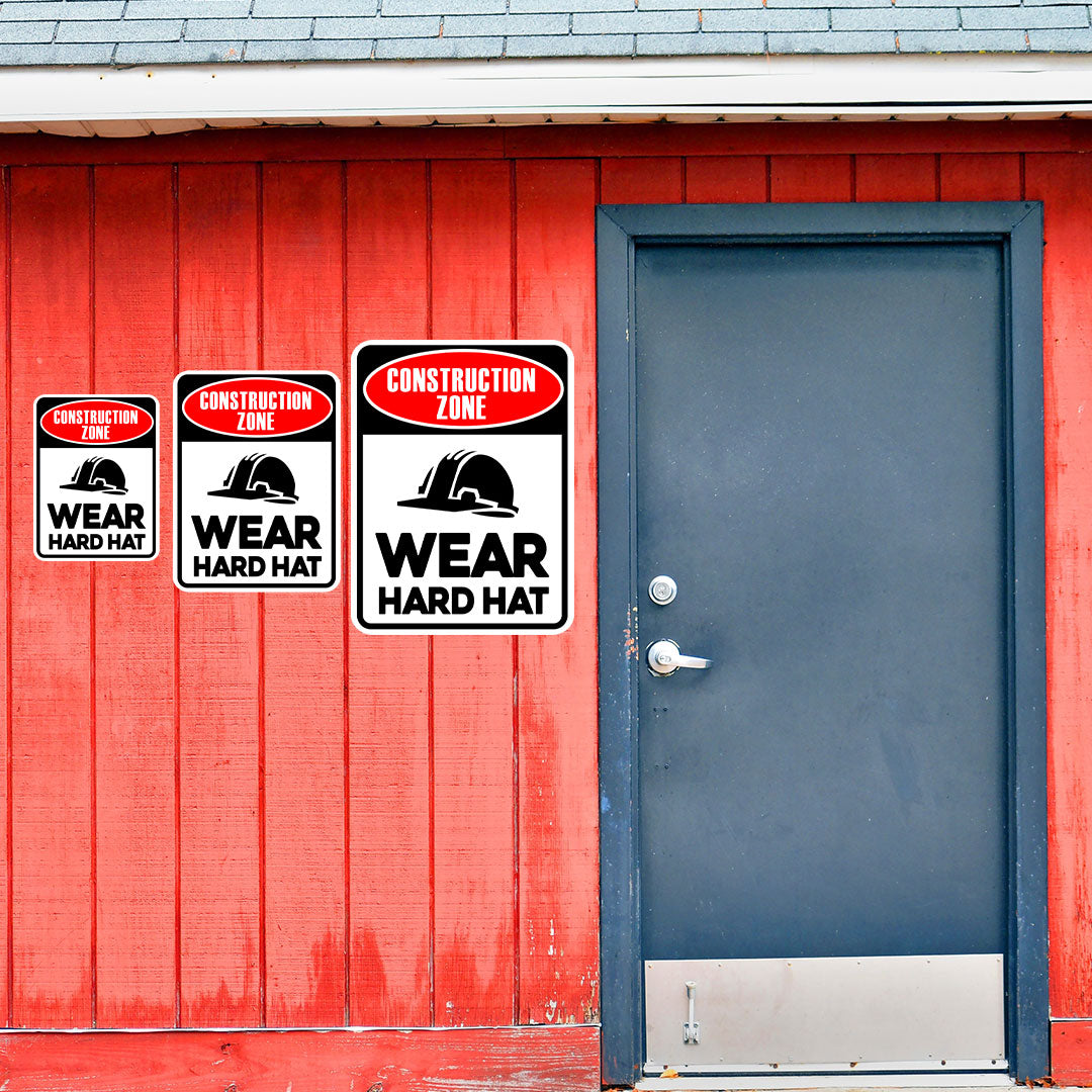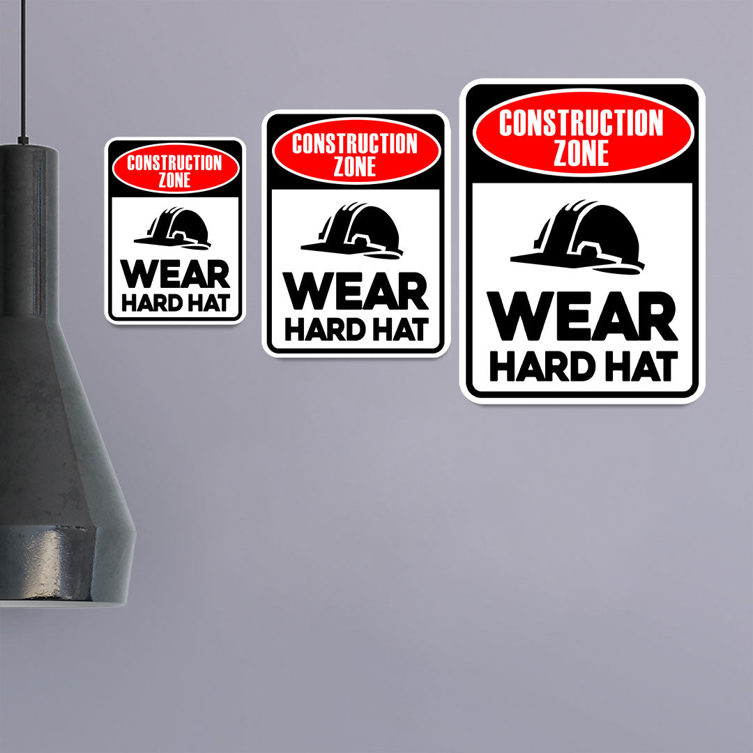 Portrait Round Plus Construction Zone Wear Hard Hat Wall or Door Sign