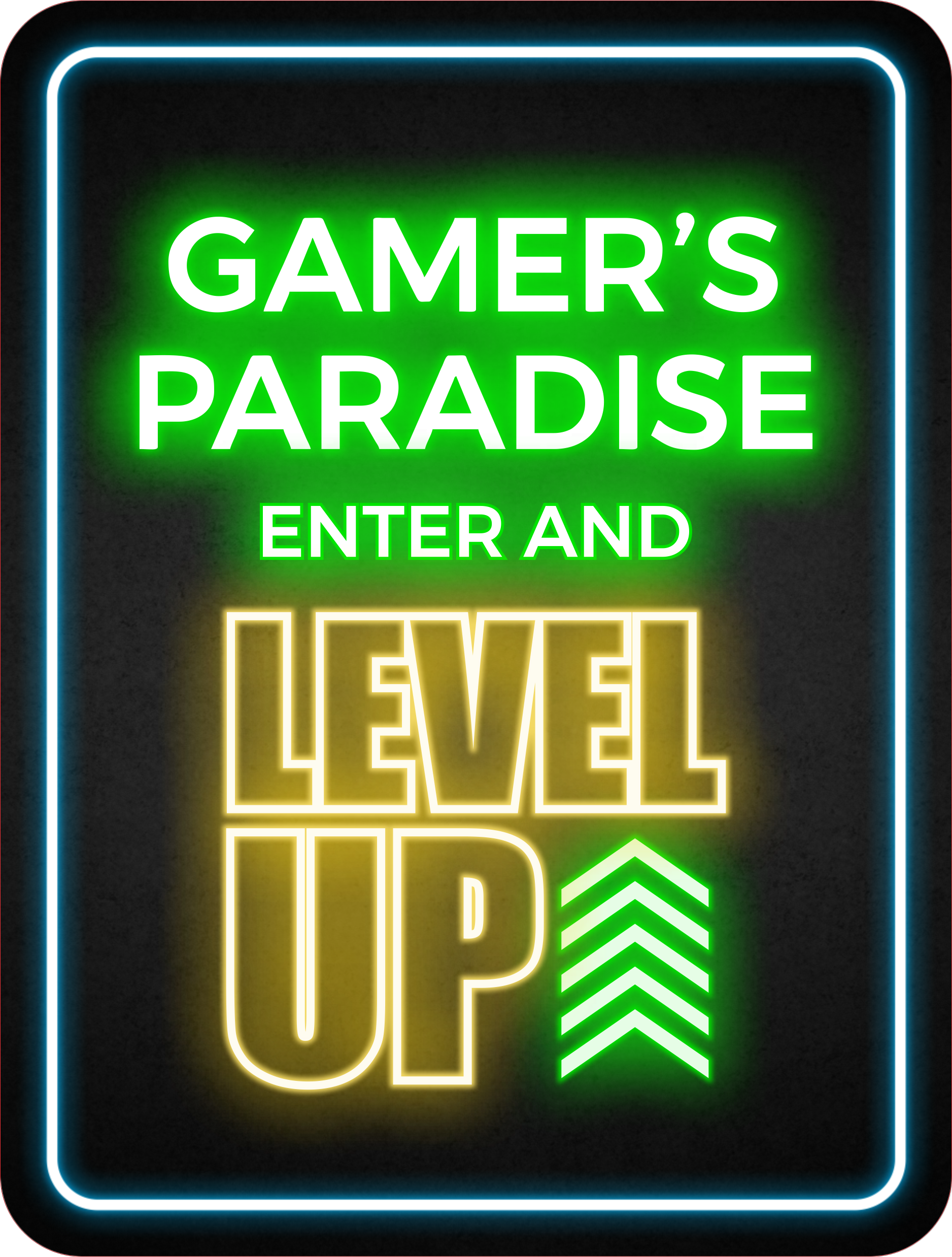 Portrait Round Plus Gamer's Paradise: Enter and Level Up Wall or Door Sign