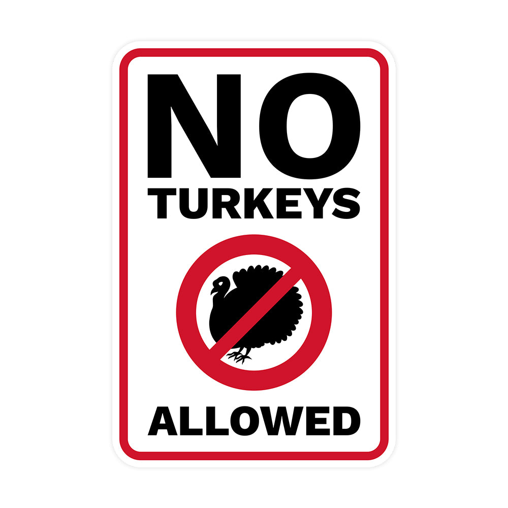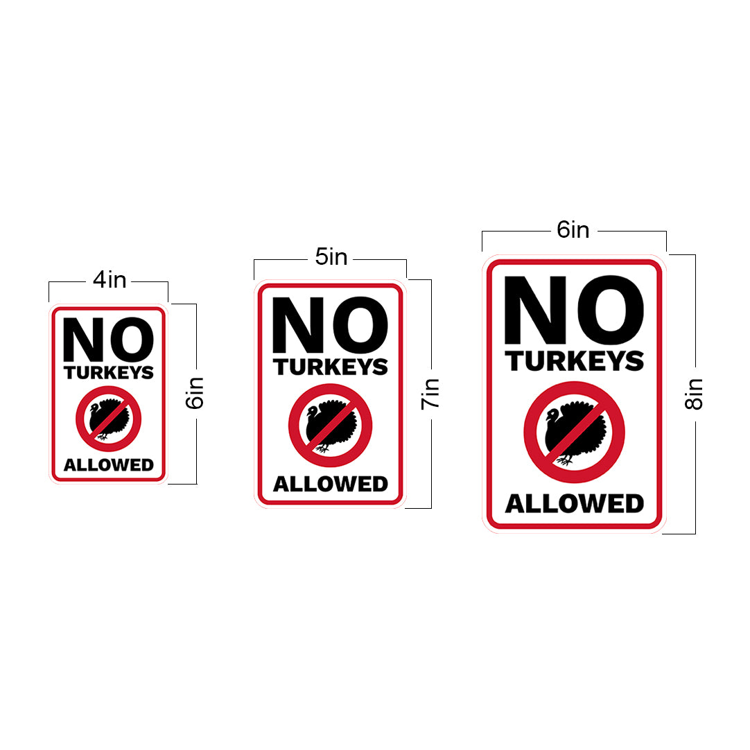 Elevate your business or home environment with Signs ByLITA's premium signs. Our Portrait Round Plus No Turkeys Allowed Wall or Door Sign is designed to enhance your workspace with style, while sending a clear message. These signs feature vivid sublimation printing that ensures clear and lasting colors, making a powerful visual impact. Installation is a breeze with double-sided adhesive foam tape, providing a secure hold without surface damage. Crafted from durable reinforced plastic, our Portrait Round Plus No Turkeys Allowed Wall or Door Sign is built to withstand daily wear and environmental conditions, eliminating the need for frequent replacements. These versatile signs find applications in various settings, from office doors and meeting rooms to displaying essential information or adding a touch of sophistication to your home decor. Signs ByLITA are the ideal choice for corporate offices, medical facilities, schools, and more. Our No Turkeys Allowed Sign offers a practical and stylish solution to elevate your workspace. Invest in these signs today to make a lasting impression, enhance professionalism, safety and security and transform your workspace into a welcoming and professional environment.