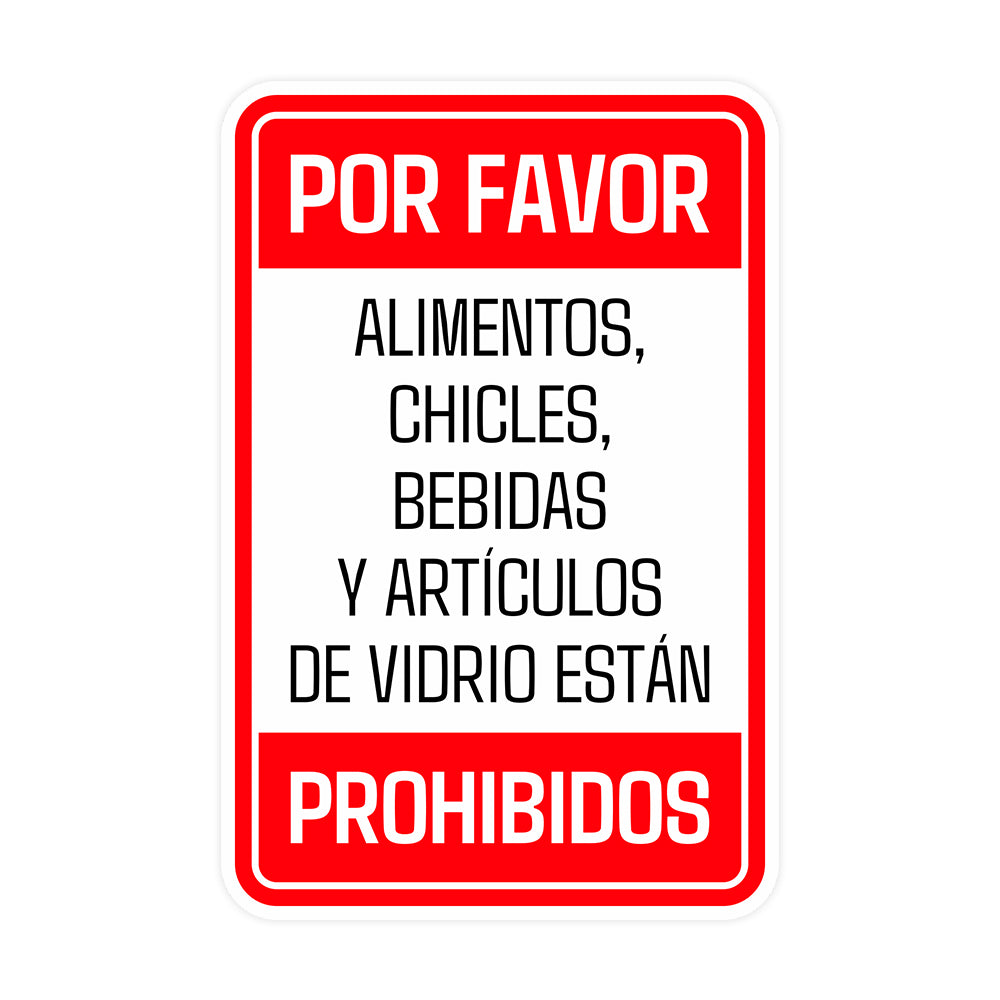Portrait Round Plus Por favor, alimentos, chicles, bebidas y artículos de vidrio están prohibidos Wall or Door Sign