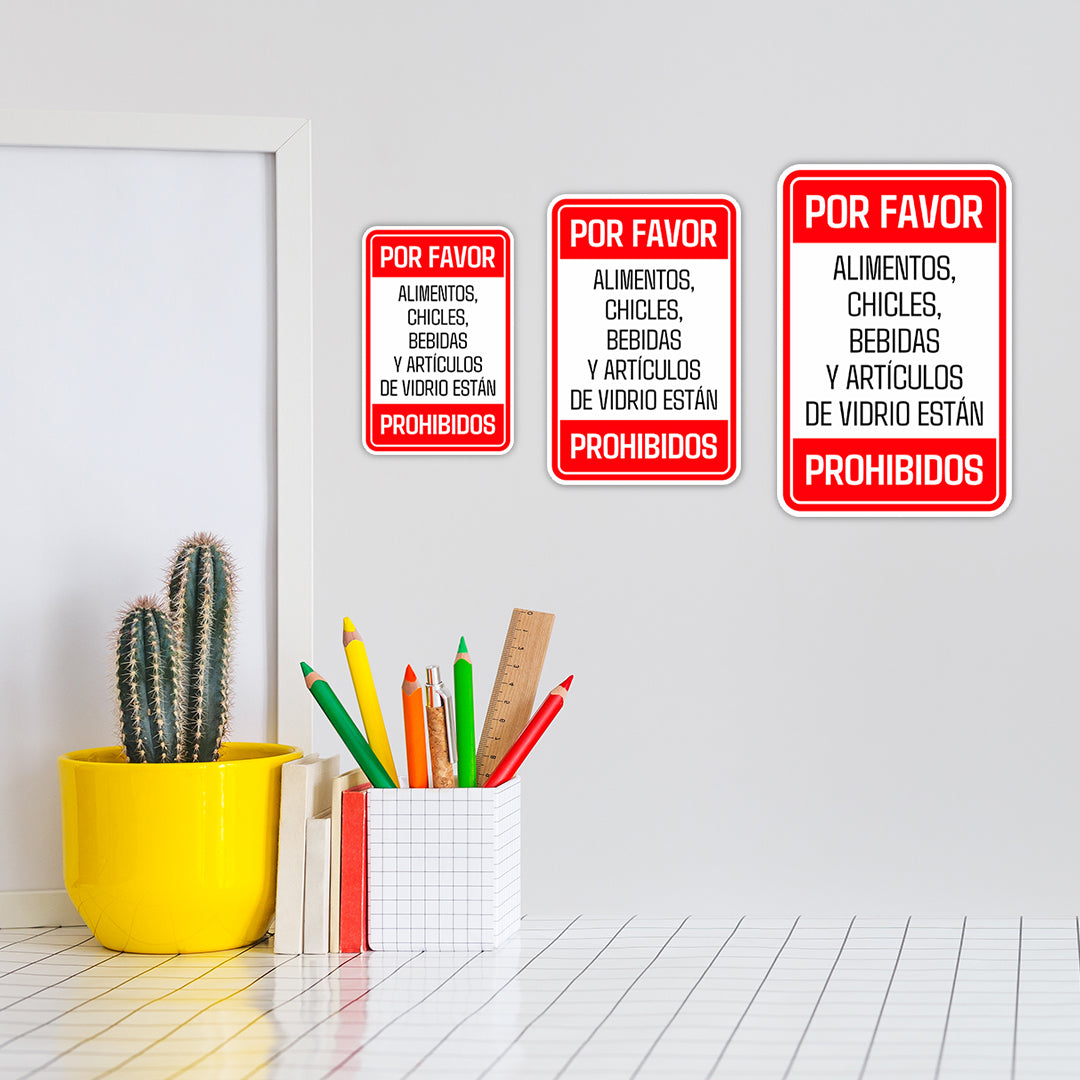 Elevate your business or home environment with Signs ByLITA's premium signs. Our Portrait Round Plus Por favor, alimentos, chicles, bebidas y artículos de vidrio están prohibidos Wall or Door Sign is designed to enhance your workspace with style, while sending a clear message. These signs feature vivid sublimation printing that ensures clear and lasting colors, making a powerful visual impact. Installation is a breeze with double-sided adhesive foam tape, providing a secure hold without surface damage. Crafted from durable reinforced plastic, our Portrait Round Plus Por favor, alimentos, chicles, bebidas y artículos de vidrio están prohibidos Wall or Door Sign is built to withstand daily wear and environmental conditions, eliminating the need for frequent replacements. These versatile signs find applications in various settings, from office doors and meeting rooms to displaying essential information or adding a touch of sophistication to your home decor. Signs ByLITA are the ideal choice for corporate offices, medical facilities, schools, and more. Our Por favor, alimentos, chicles, bebidas y artículos de vidrio están prohibidos Sign offers a practical and stylish solution to elevate your workspace. Invest in these signs today to make a lasting impression, enhance professionalism, safety and security and transform your workspace into a welcoming and professional environment.