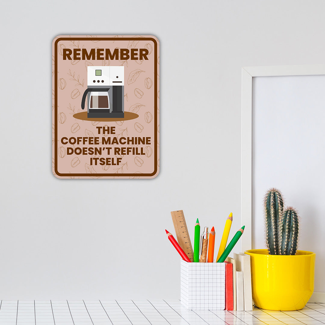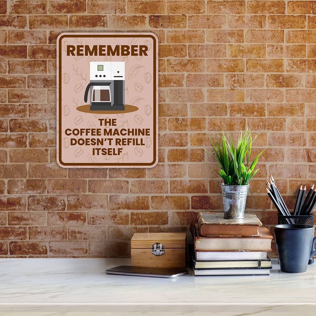 Portrait Round Plus Remember The Coffee Machine Doesn't Refill Itself Wall or Door Sign