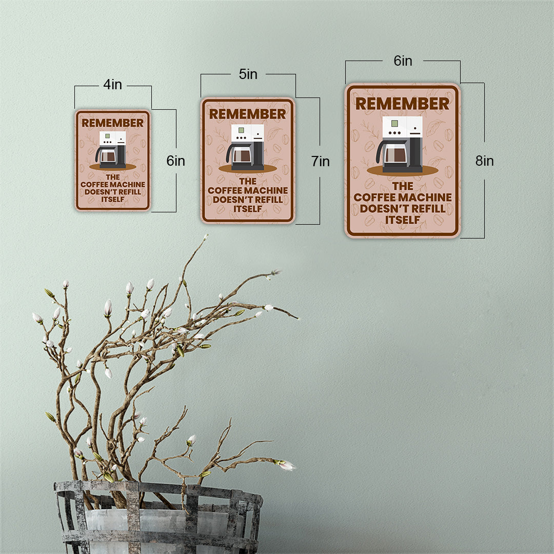 Elevate your business or home environment with Signs ByLITA's premium signs. Our Portrait Round Plus Remember The Coffee Machine Doesn't Refill Itself Wall or Door Sign is designed to enhance your workspace with style, while sending a clear message. These signs feature vivid sublimation printing that ensures clear and lasting...