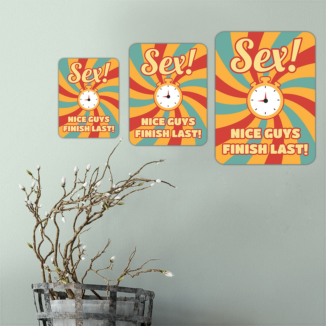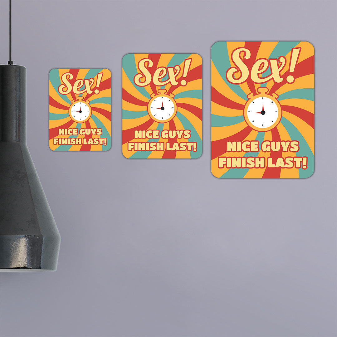 Portrait Round Plus Sex! Nice Guys Finish Last! Wall or Door Sign