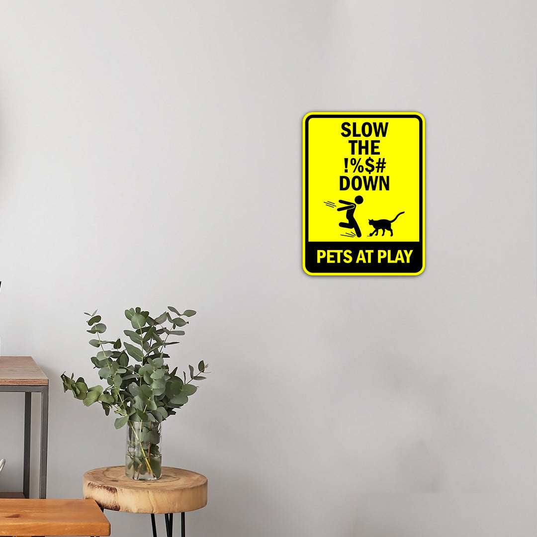 Elevate your business or home environment with Signs ByLITA's premium signs. Our Portrait Round Plus Slow The !% Down Pets At Play Wall or Door Sign is designed to enhance your workspace with style, while sending a clear message. These signs feature vivid sublimation printing that ensures clear and lasting...