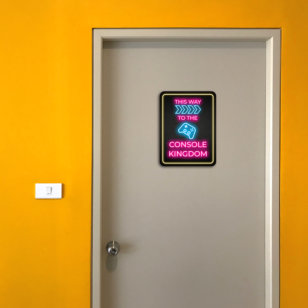 Portrait Round Plus This Way to the Console Kingdom (Right Arrow) Wall or Door Sign