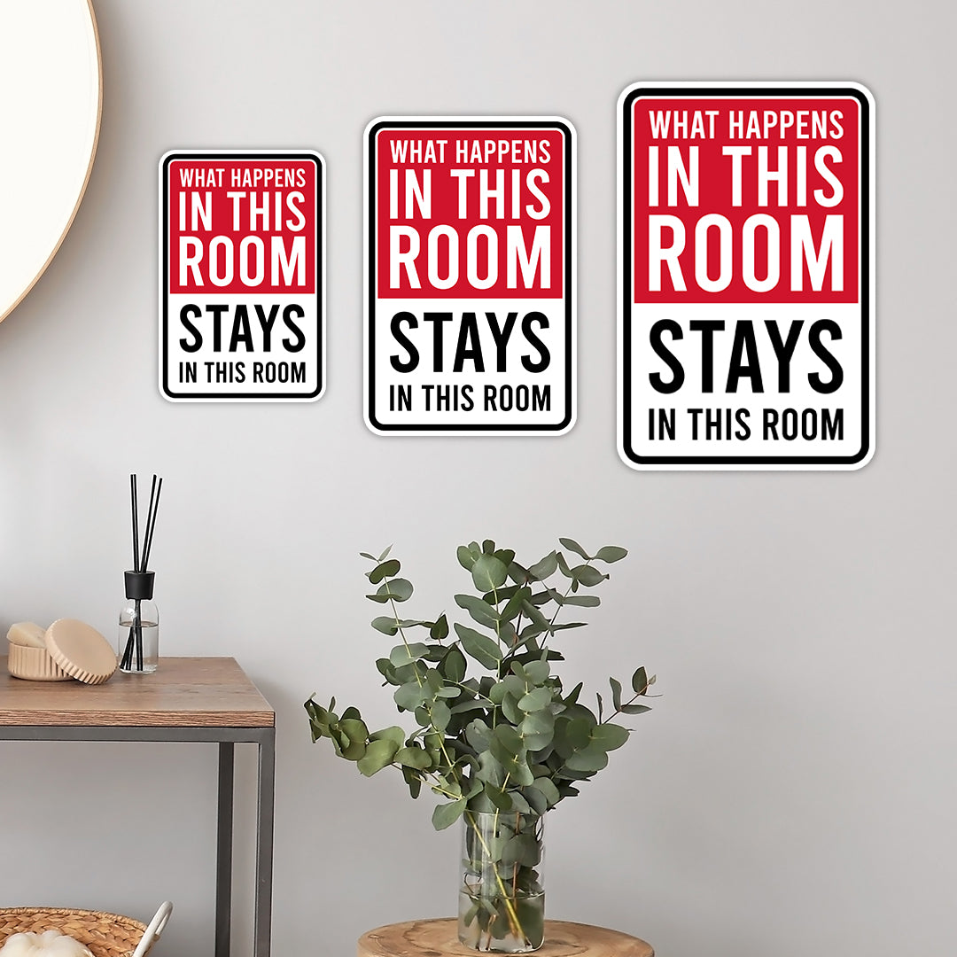 Portrait Round Plus What Happens In This Room Stays In This Room Wall or Door Sign